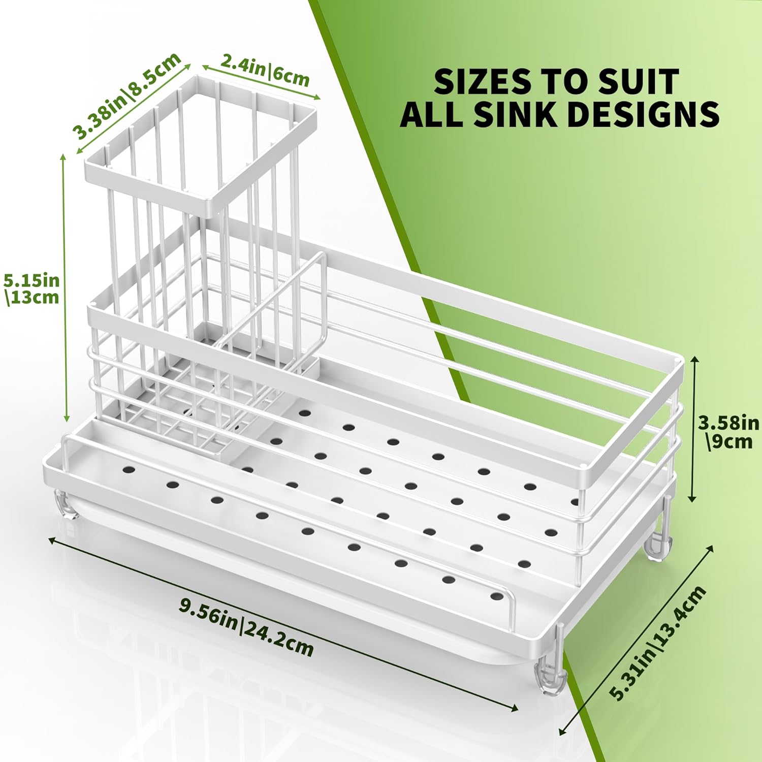- 【UPGRADED BRUSH RACK HEIGHT】In order to meet the storage needs of more families, Cisily sink caddy has upgraded the height of the brush rack storage part, the 5.15in height can store more and higher brushes. We hope this shelf will allow you to make the most of every inch of space and make your kitchen look cleaner.