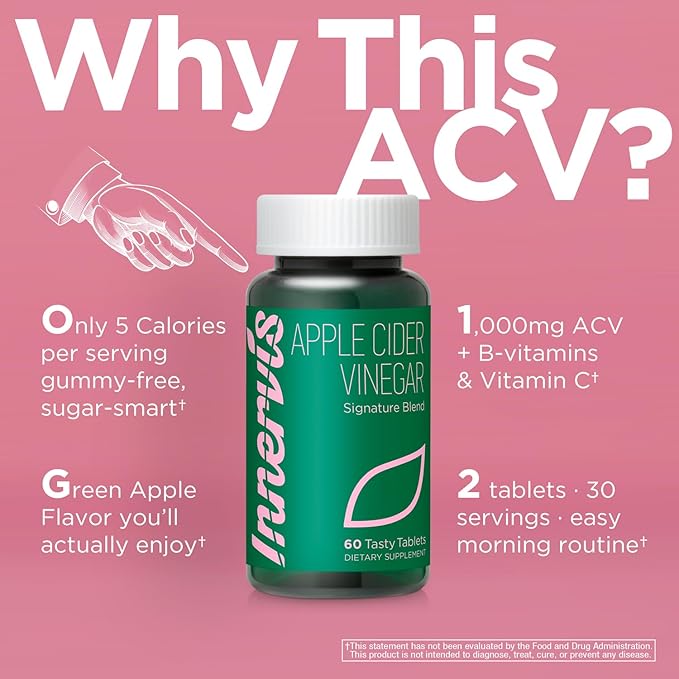 - SIGNATURE ACV + VITAMINS: 1,000 mg ACV with B1, B2, B6, Niacin & Folate plus Vitamin C—crafted to support energy metabolism, appetite control, and daily wellness in one tasty tablet.