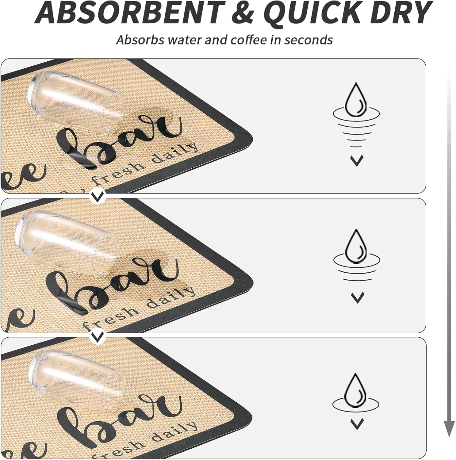 - ☕【Wide range of uses】 It is not just a coffee bar mat, but also a high water absorption and quick dry pad that can be widely used as a drying mat for kitchen countertop, cups, water dispensers, mixers, ice cream machines, dish washing racks, dinner plates, tableware, etc., or as a food pad for pets.