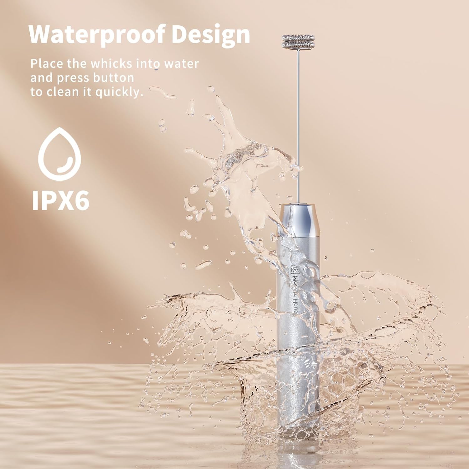 Maestri House Rechargeable Milk Frother with Stand, LunaFro Handheld Electric Foam Maker Waterproof Detachable Stainless Steel Whisk Drink Mixer Foamer for Lattes, Cappuccino