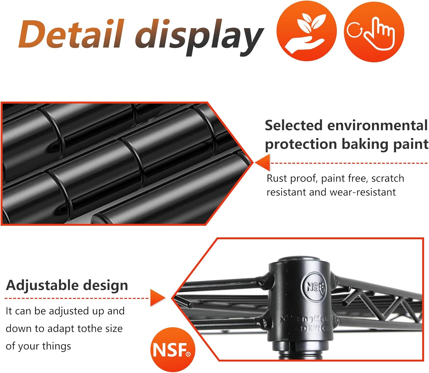 - 2.**Height Adjustable Tiers for Customized Storage:** The adjustable tiers allow you to customize the shelves height to fit items of varying heights. Create versatile storage configurations to maximize your space and accommodate different needs with our wire shelving . Whether it's books, decor, or equipment, these storage shelves can adapt to your storage requirements.