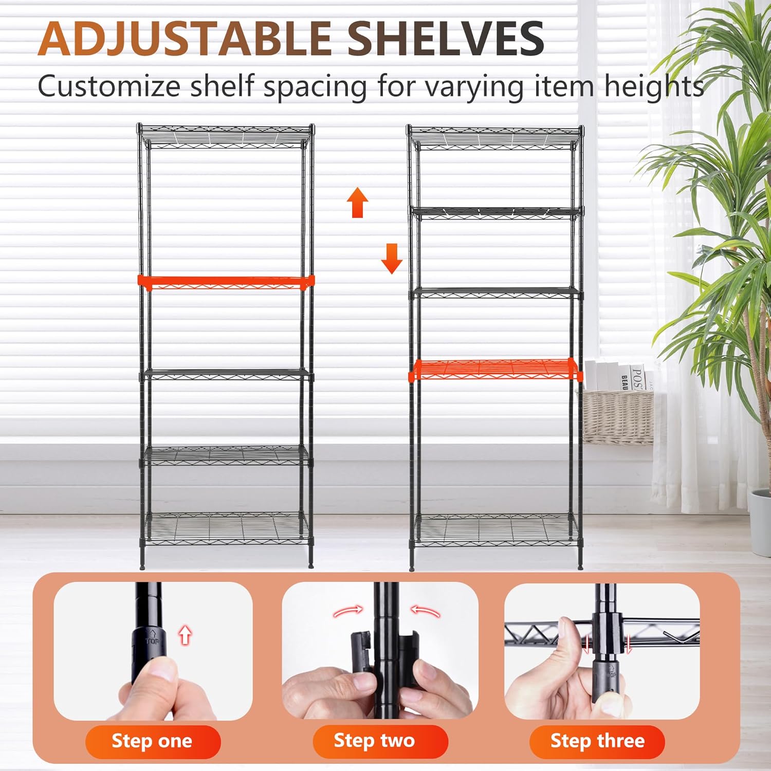 FDW Shelves,Wire Shelving Utility Storage Shelves Shelving Unit NSF Certified Height Adjustable Metal 5 Tier Shelves Easy Assembly 24" L x 14" W x 59" H,Black