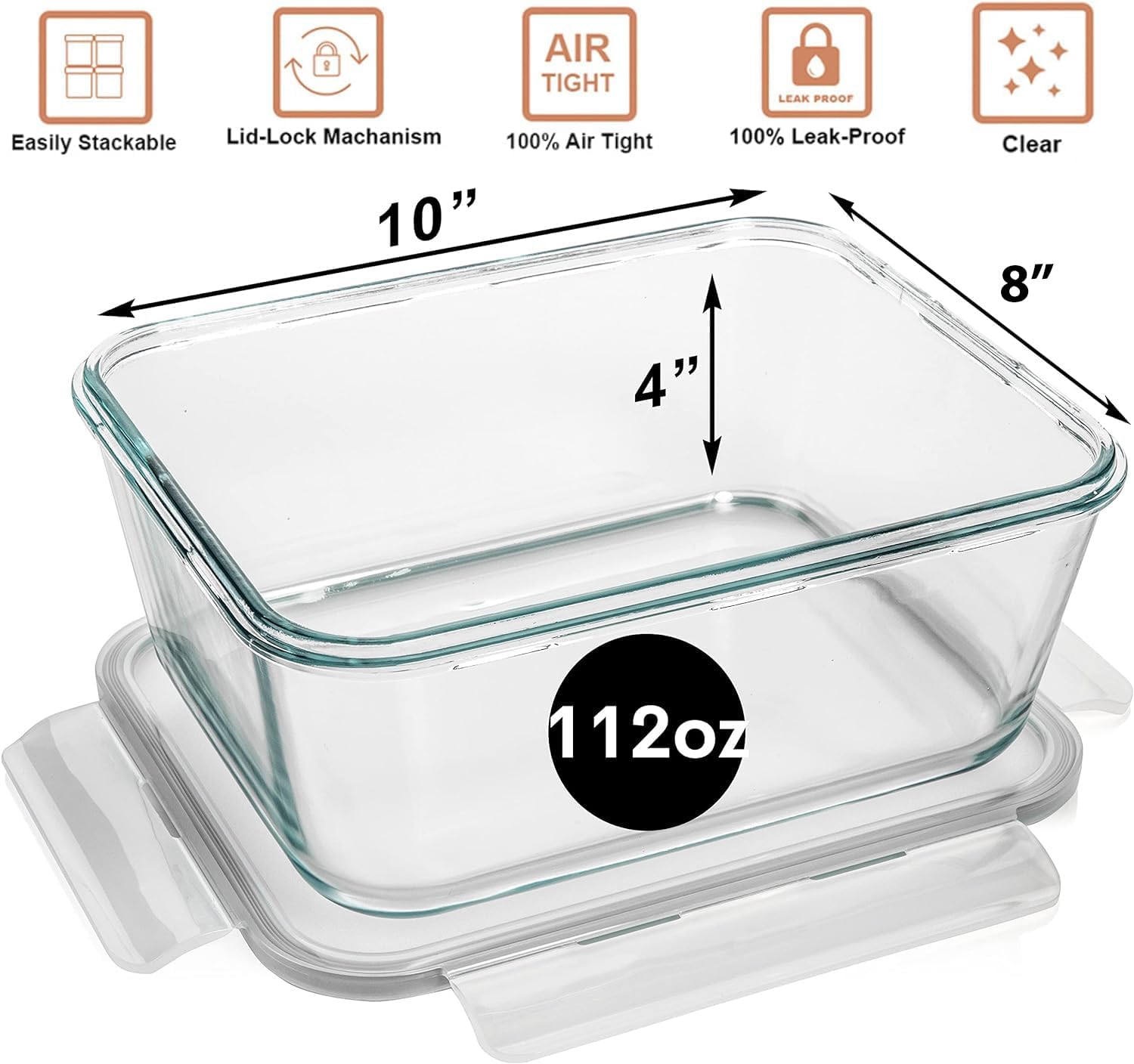 - LARGEST GLASS CONTAINER WITH AIRTIGHT LOCKING LID ON AMAZON. NOTE: You are purchasing 1 Glass Container with 1 Plastic Locking Lid