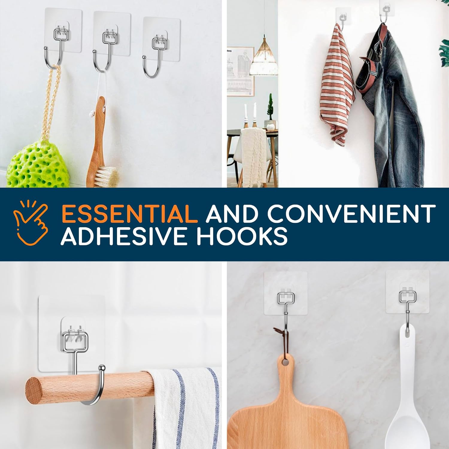 - Easy to use: Apply clear adhesive hooks effortlessly to clean and reposition without damaging surfaces; no nailing or drilling required; reuse after cleaning and drying; keep accessories secure on any surface.