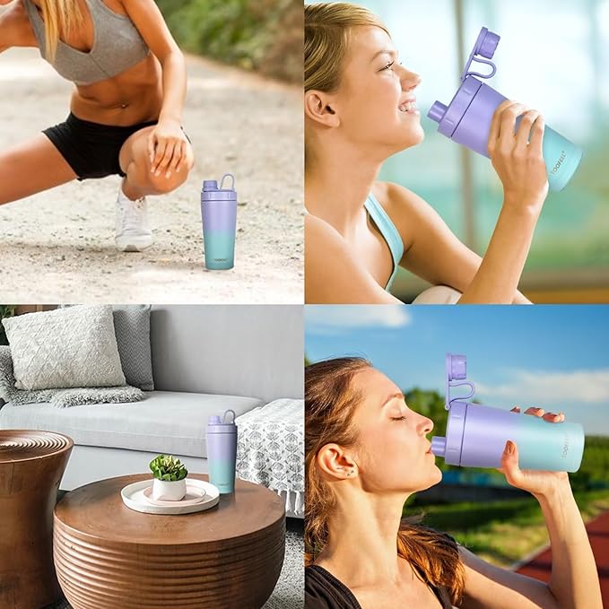 - 【UNPARALLELED INSULATION】Stainless steel shaker bottles are double wall vacuum insulated, keeps cold drinks up to 24+ hours cold and keeps hot drinks up to 12 hours warm, ensuring that you can have a refreshing or warm drink anytime you want. The Toofeel's bottle insulated double wall helps prevent sweating, so you can enjoy your drinks without any excess moisture on the outside of the bottle. Experience the next level of beverage enjoyment with our metal insulated shaker cups.