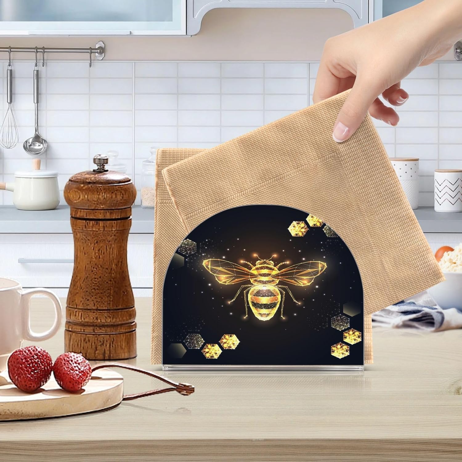 Gold Honey Bee Honeycombs Napkin Holder for Table Paper Napkins Holder Acrylic Tissue Dispenser Kitchen Dining Room Bathroom Party Car Decor