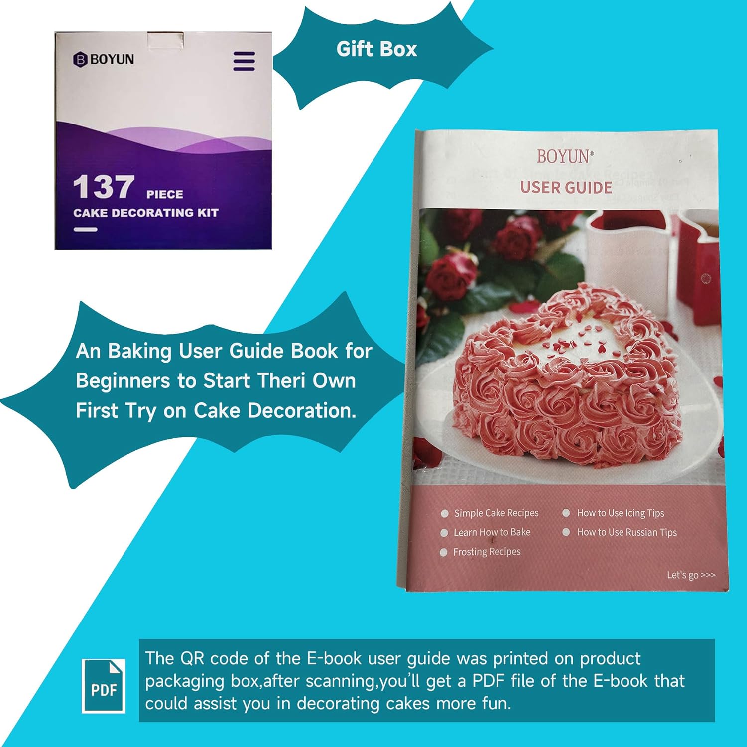 - PATTERN CHART AND E-BOOK :This cake decorating is FUN FOR ALL AGES AND SKILL LEVELS,This set having numbered piping tips with Pattern chart. So you don't have to worry about which tips produce what kind of decoration, just have a look on pattern chart where we have provided outcome of each tip to make tip selection,E-Book user guide includes The Cake Decorating supplies four levels,Each step Method of Cake Baking, Leveling & icing cakes, 3 frosting recipes, Step by step guide for using icing