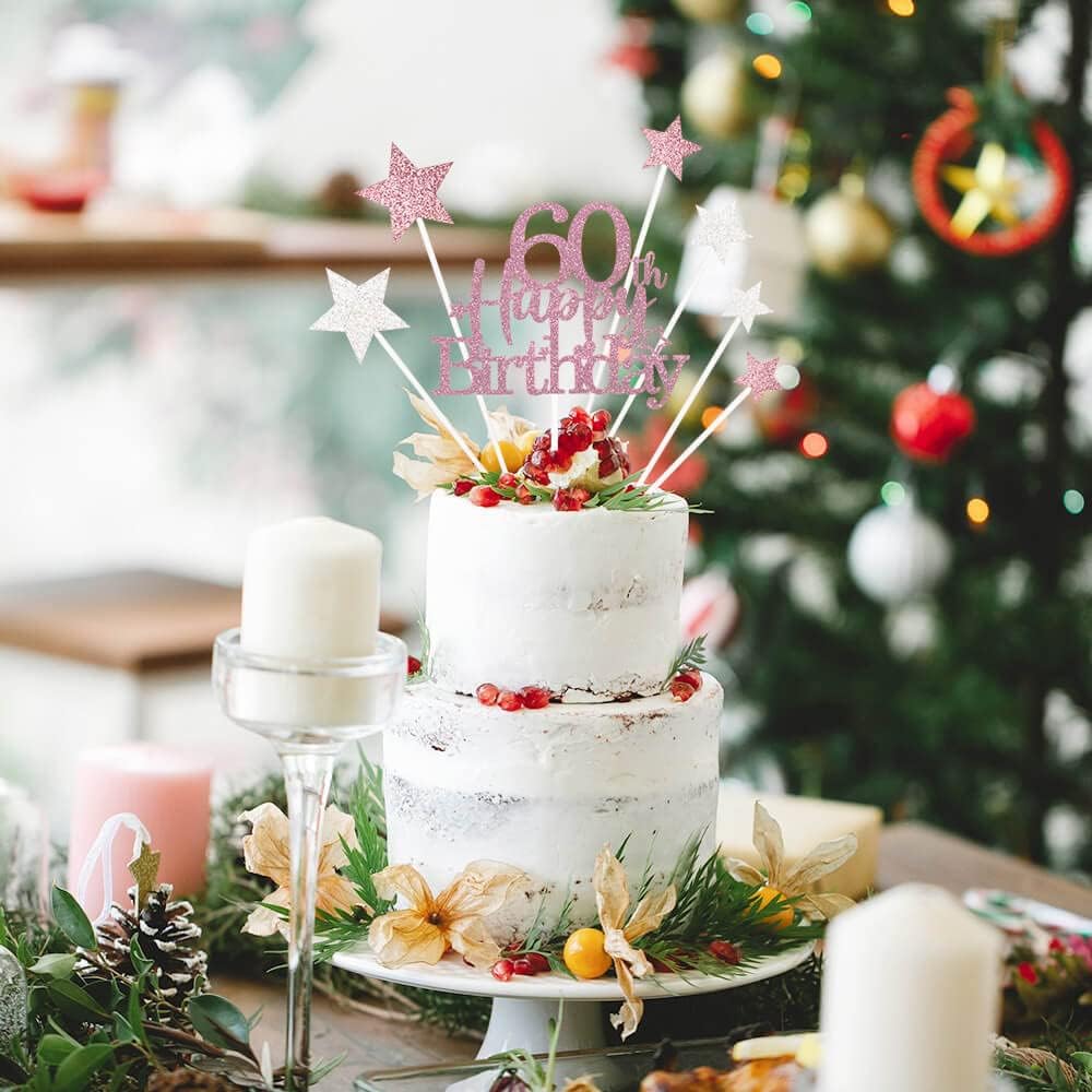 - Rose Gold Birthday Cake Decorations: Package include 1 pcs Rose Gold Glittery 60th Happy Birthday Cake Toppers, 6 pcs Rose Gold and silver star cupcake topper, These Rose Gold cupcake topper will be final touch to your birthday cake!You will love it.