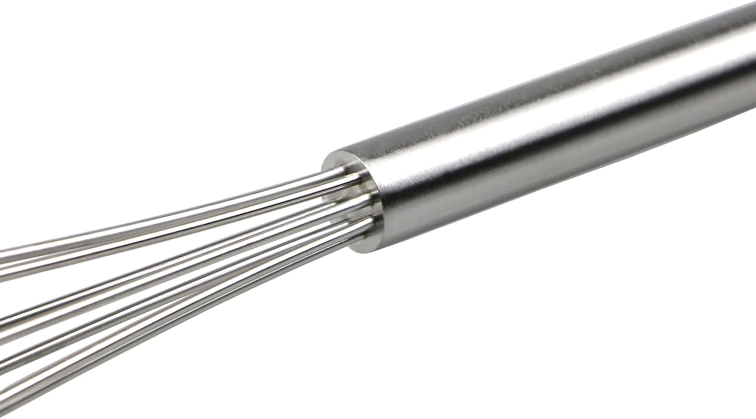 - High-Efficiency Mixing for Perfect Results** This stainless steel whisk excels at aerating egg whites into fluffy peaks, blending smooth vinaigrettes, and whipping cream into light, airy textures. Its optimized wire design ensures quick, thorough mixing with minimal effort, making this whisk ideal for creating peaked desserts, creamy sauces, or evenly blended batters.