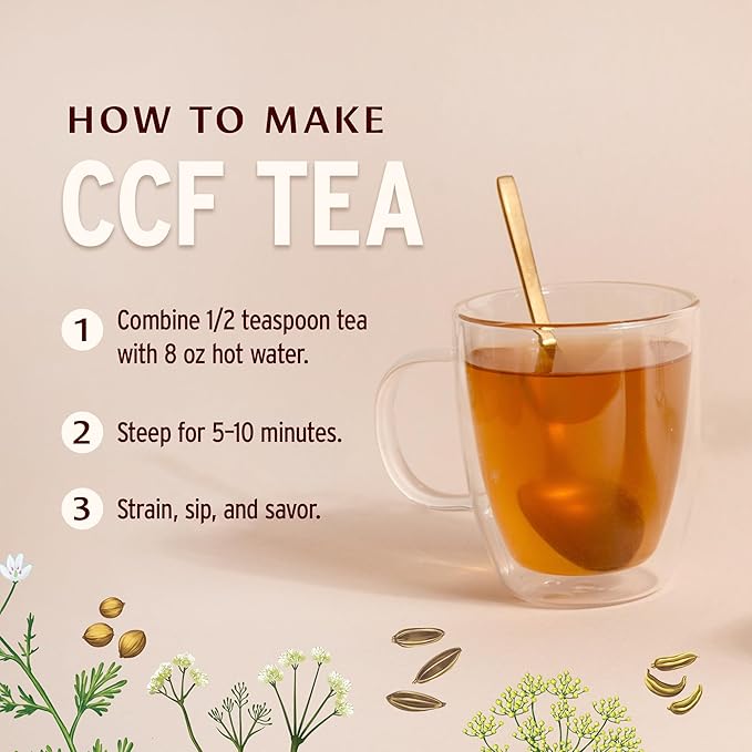 - WITH A GOLDEN color and satisfying flavor, this organic CCF Tea blends cumin, coriander, and fennel seeds into a delicious and beneficial brew. It is equally beneficial during an Ayurvedic cleanse or for simple daily sipping.*