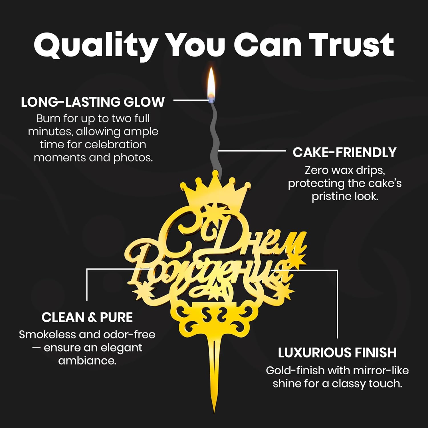 - Add Elegance to Your Celebration: This luxury cake topper candle is designed to instantly elevate your celebrations. With its premium gold glitter finish, this candle becomes the focal point on birthdays, weddings, and anniversaries. Whether it's a first birthday or a golden anniversary, let this striking centerpiece make your event unforgettable.