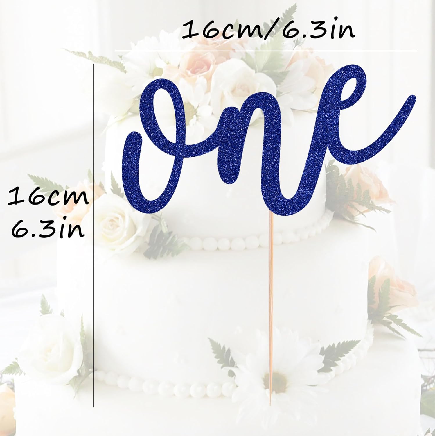 First Birthday Cake Topper - Blue Glitter One Cake Decorating Supplies for Girls and Boys, Perfect for Baby Shower/Gender Revealing Party/Baby Party Photo Booth Props