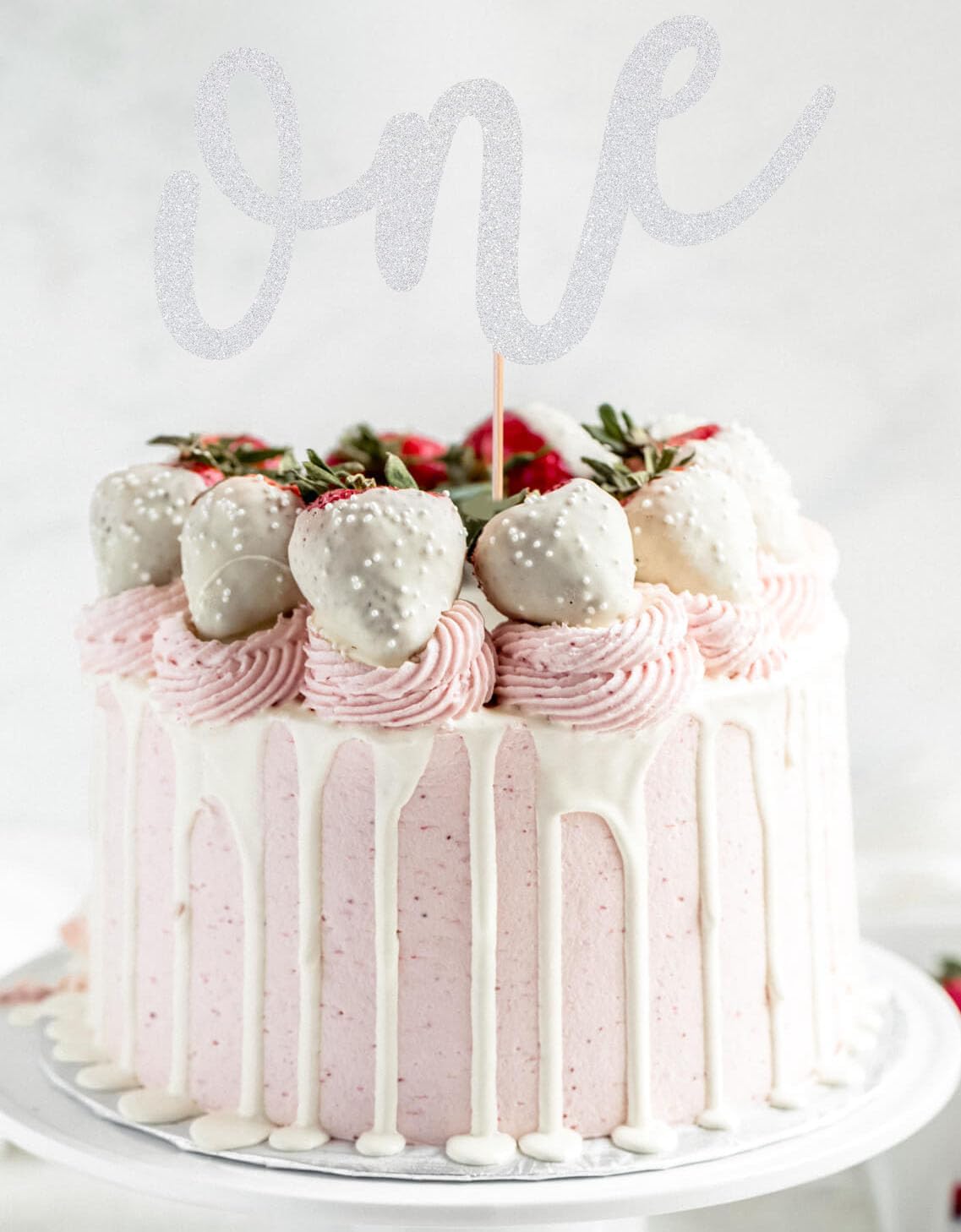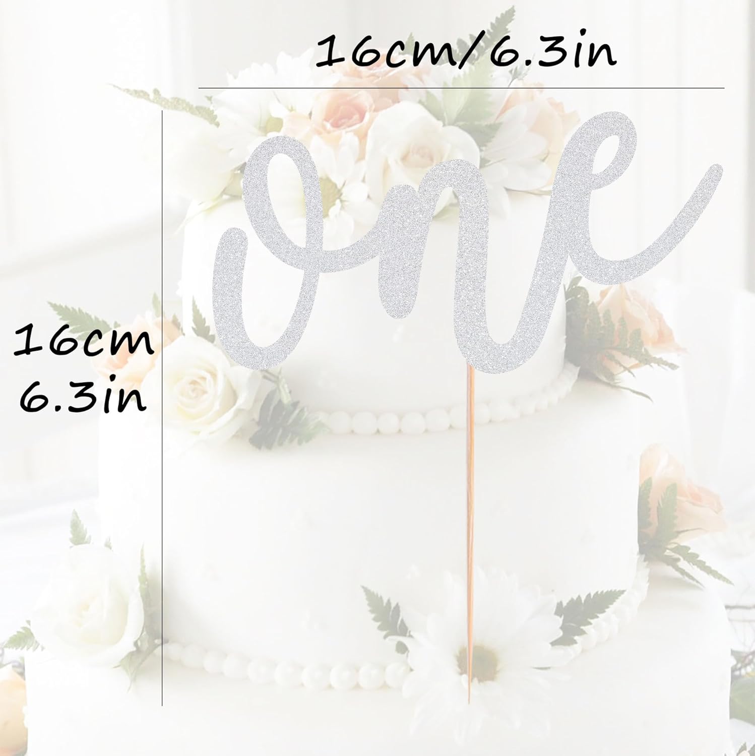 First Birthday Cake Topper - Silver Glitter One Cake Decorating Supplies for Girls and Boys, Perfect for Baby Shower/Gender Revealing Party/Baby Party Photo Booth Props