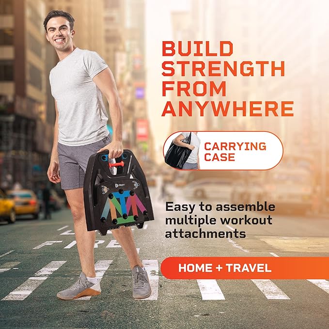 - BUILD STRENGTH ANYWHERE: Portable fitness is innovative fitness. Weighing in at only 13 lbs and measuring 36.2 x 17.2 x 2.0 in, this portable exercise gym including carrying case, is small enough to fit anywhere for easy storage and travel.