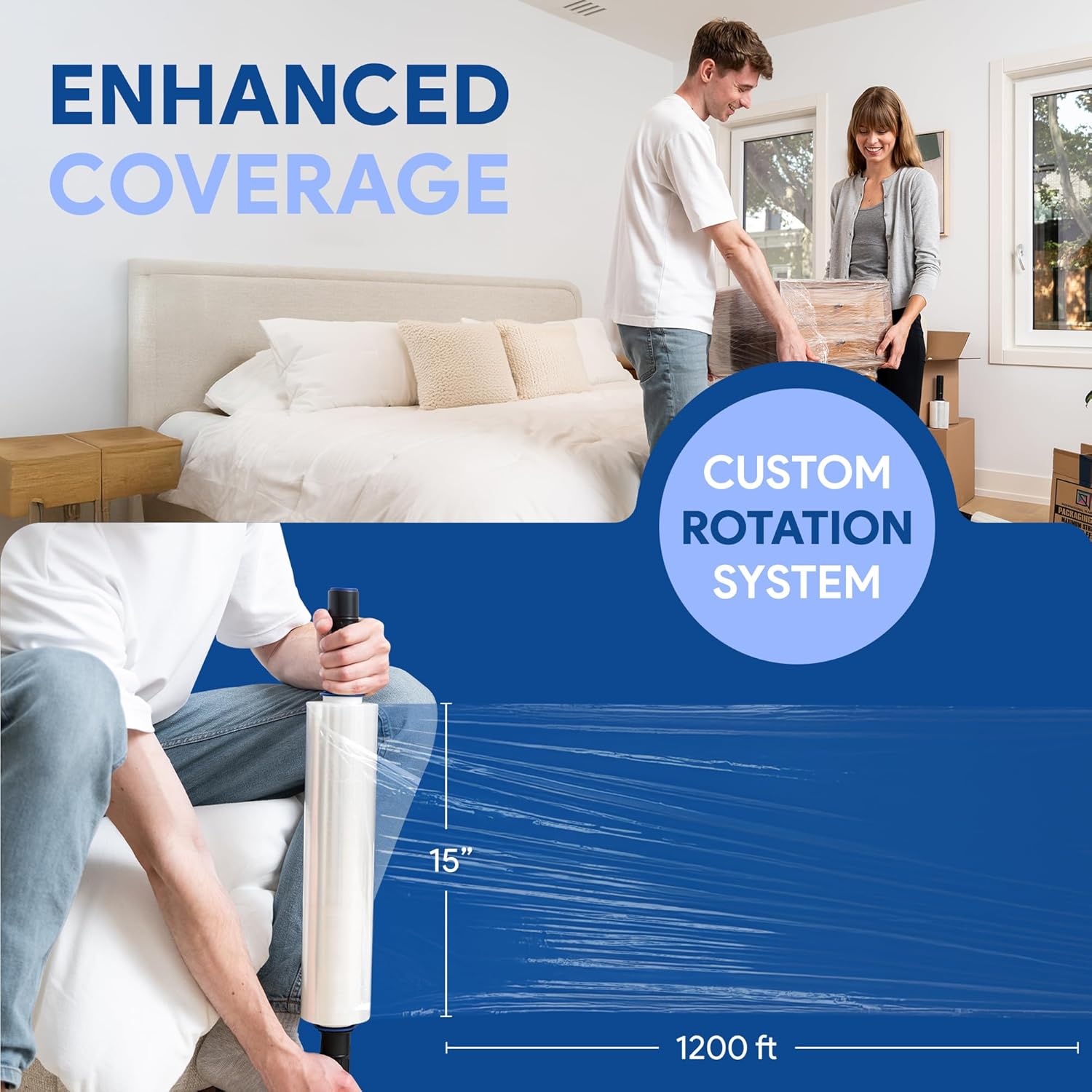 • CONQUER MOVING DAY: Wrap, bundle, and secure all your belongings with ease using this 15" x 1200 ft stretch film with extended tension handles. Move with confidence knowing your items are protected!