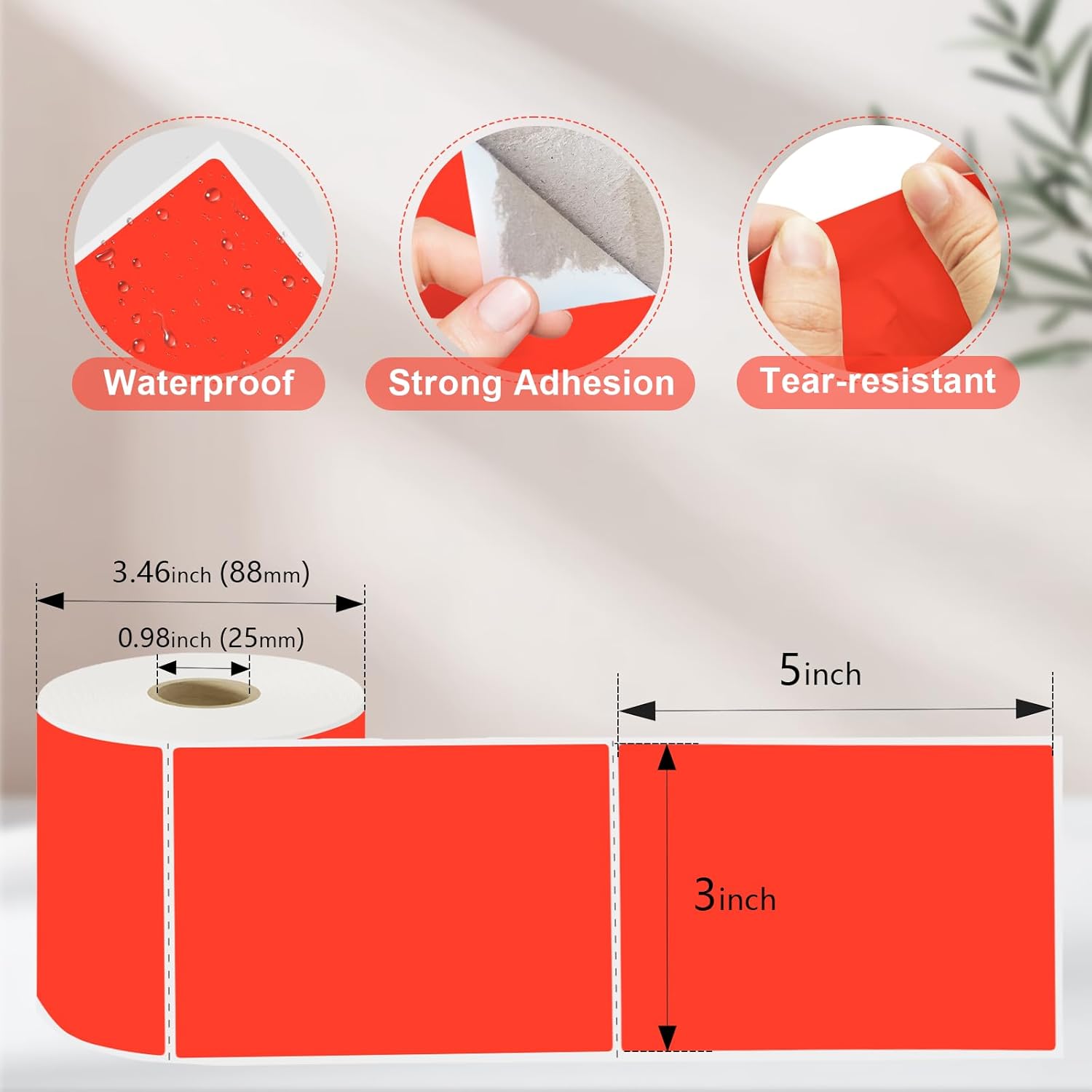 3 X 5 Inch Printable Rectangle Color Coding Labels, 300 Per Roll Adhesive Color Coding Stickers for Bar-Codes, Address, Small Business Labeling, Inventory, Fluorescent Red