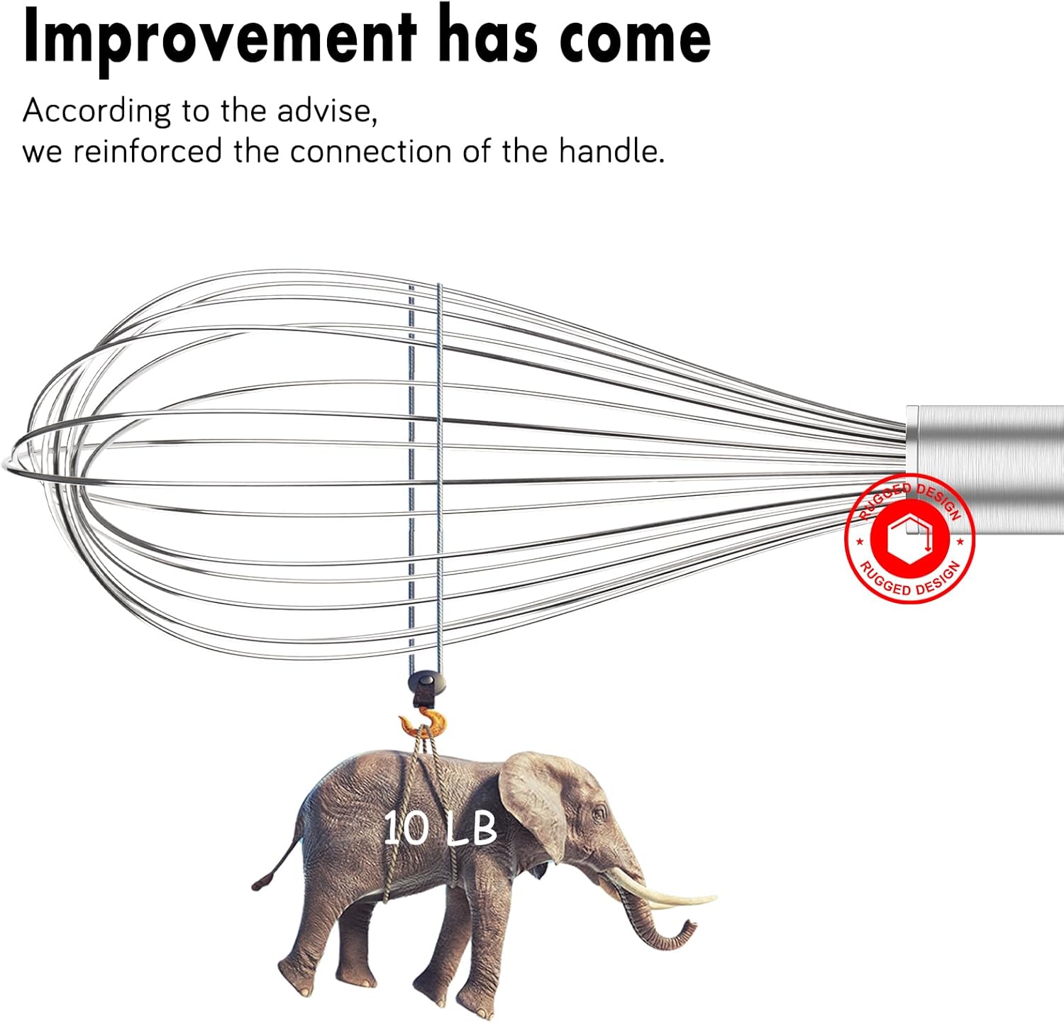 - VERSATILE SIZES: Available in 8", 10", and 12", our whisks are perfect for any kitchen task—whisking eggs, blending cream, mixing batter, crafting pastries, or preparing sauces. Choose the right size for every culinary creation