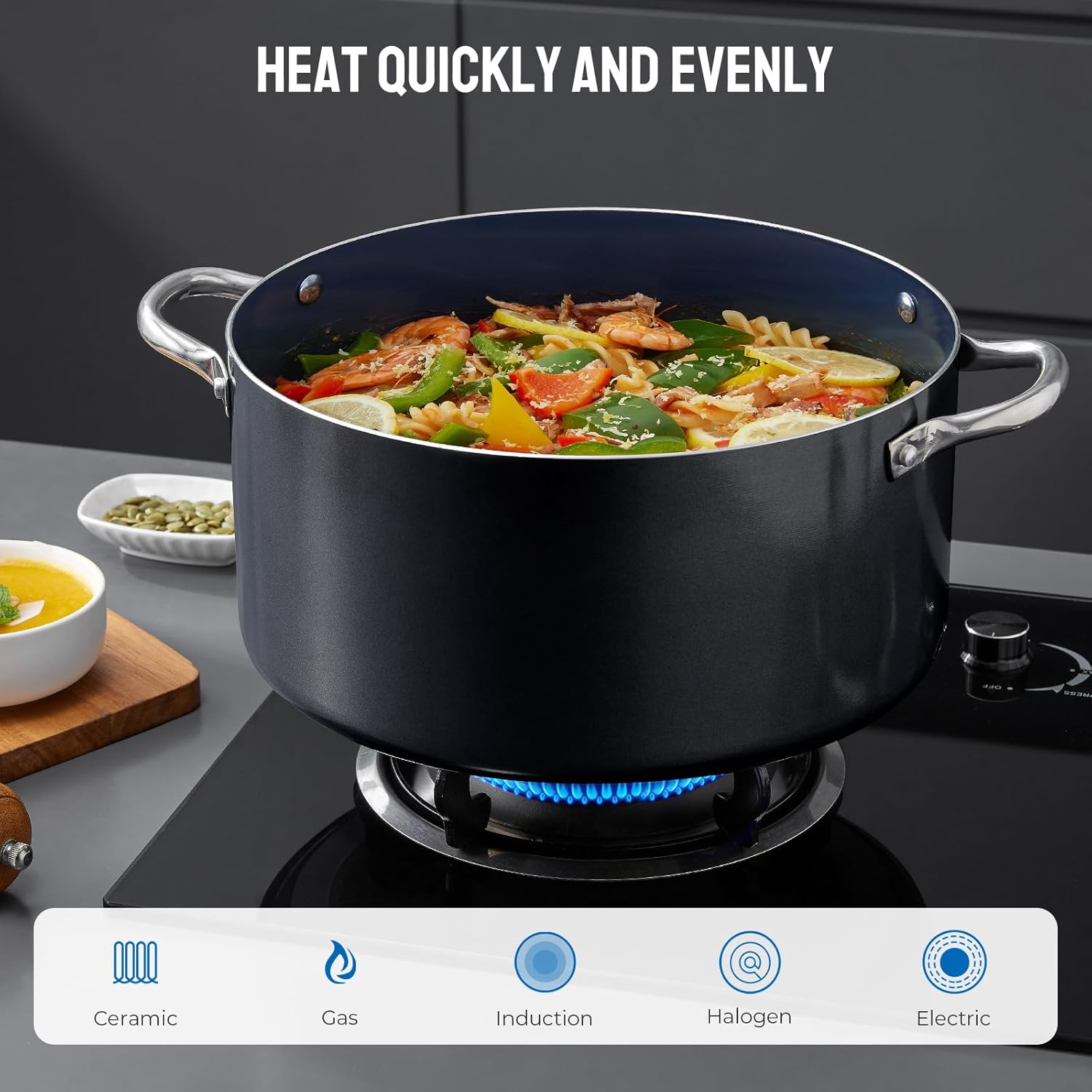 - Ultra-Durable Non-Stick: 3X the durability of traditional cookware for effortless food release with our non stick pots. Free of PFAS, PFOA, lead, and cadmium
