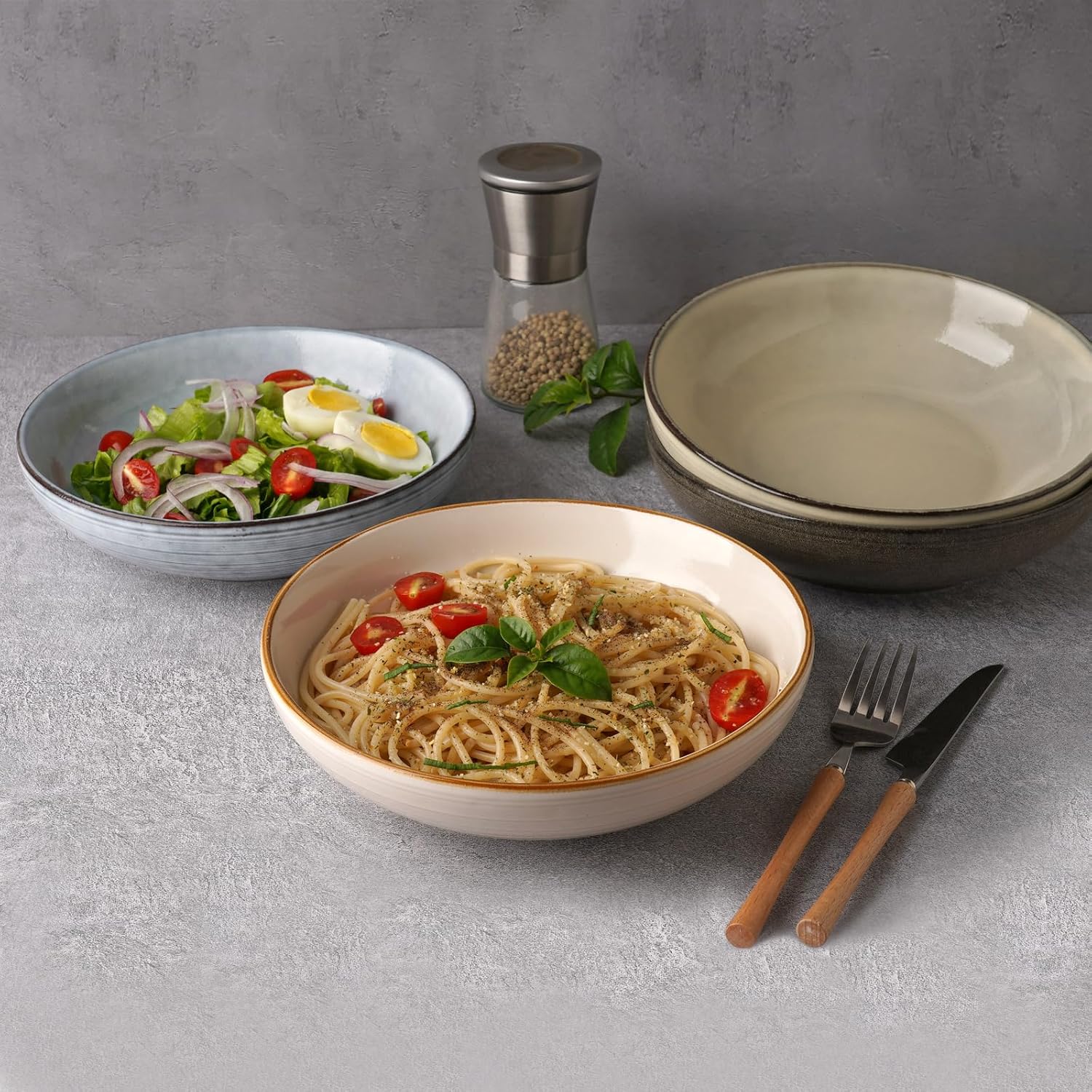 - 40 oz & VERSATILE USE - Measuring 8.6 x 2.2 inches, these 40 oz plate bowls are perfect for family use. With their wide and shallow design, this set of bowls is versatile enough to serve a variety of dishes: they can be used as pasta bowls, cereal bowls, or entree plates, and are also ideal for serving soup, bread and butter for breakfast, seafood, casserole dishes, and fruit.