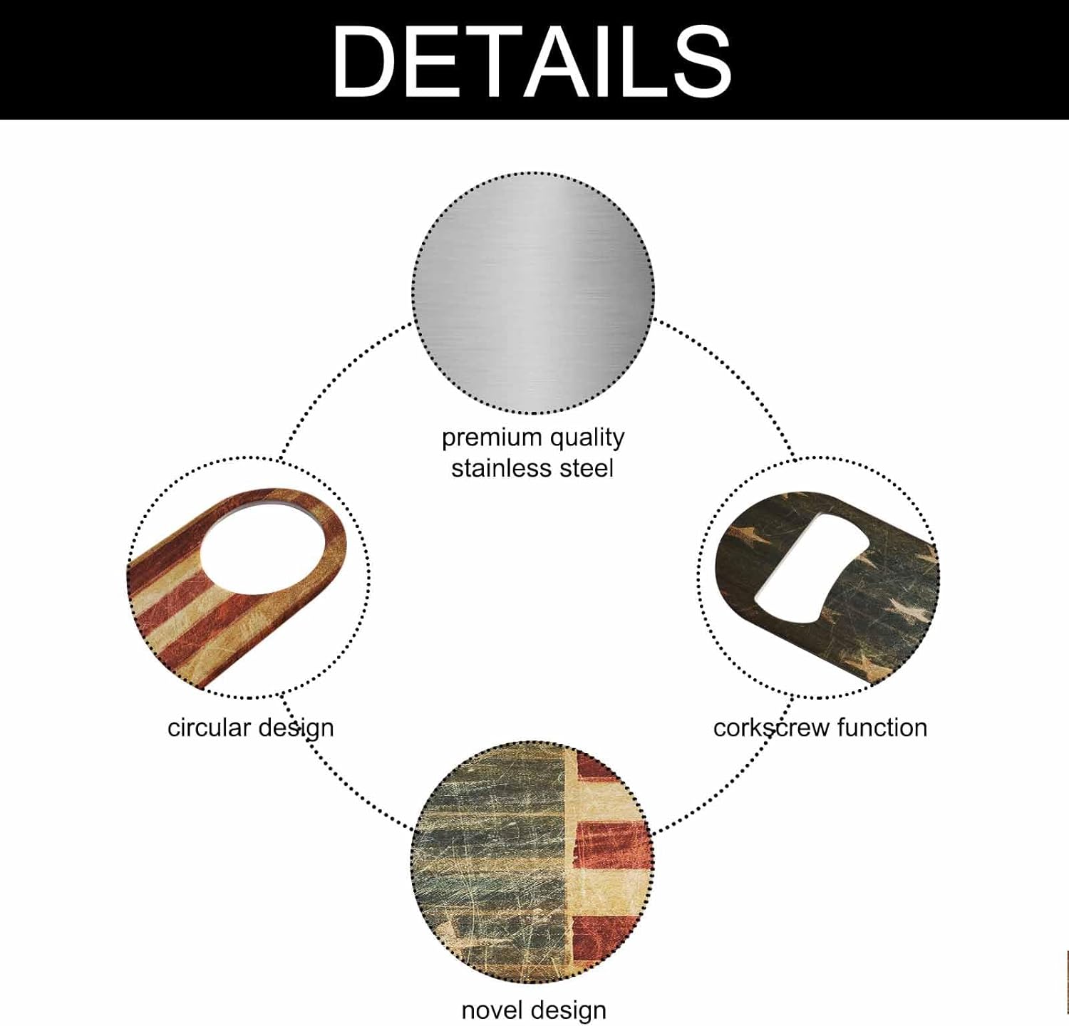 - Premium Material: Our American flag bottle opener is made of stainless steel, sturdy for long-term use.