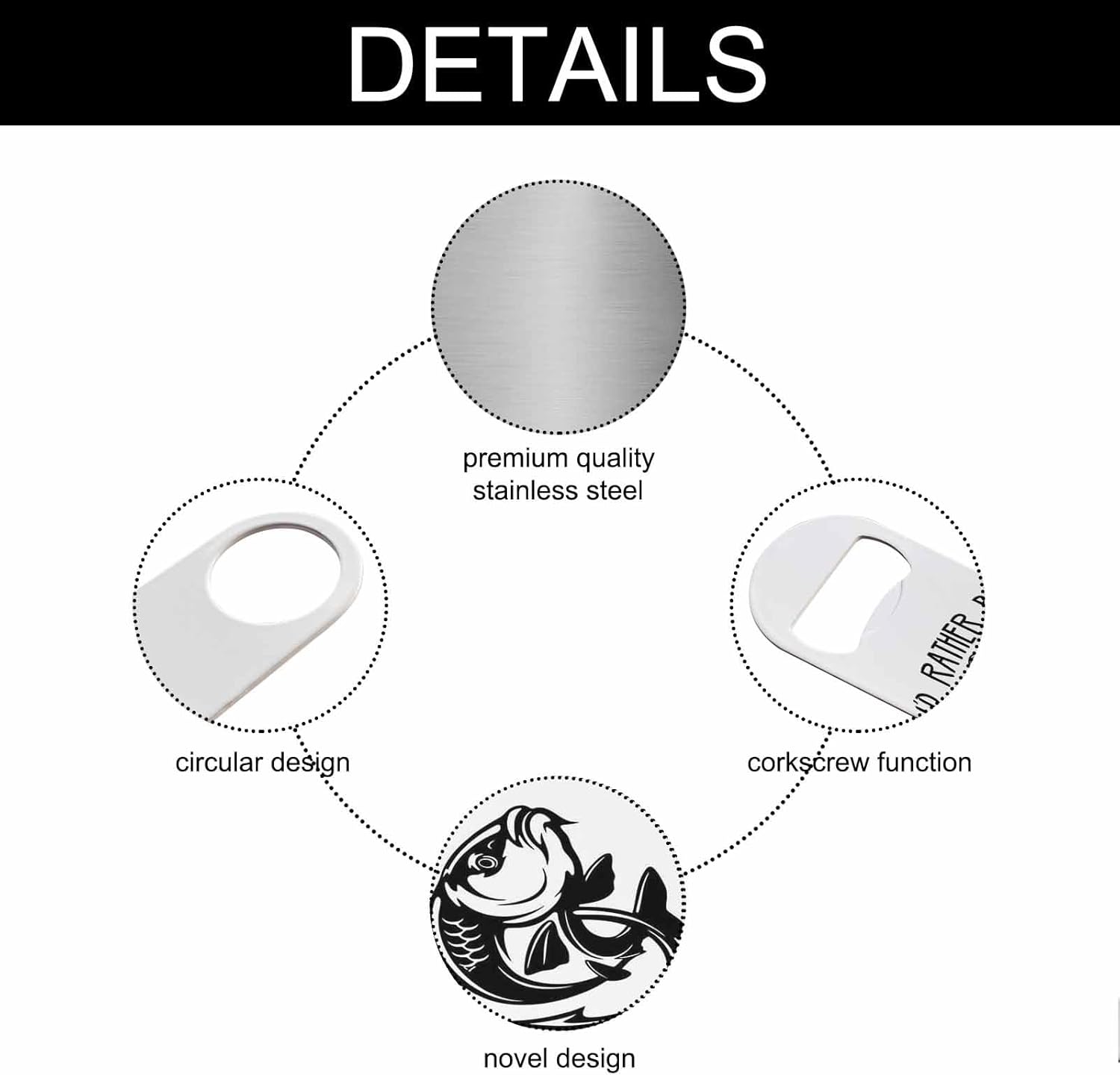 Fish Stainless Steel Bottle Opener I'D Rather Be Fishings Lettering Flat Beer Bottle Opener Keychain for Home Kitchen Bar Restaurant Party Birthday Gift