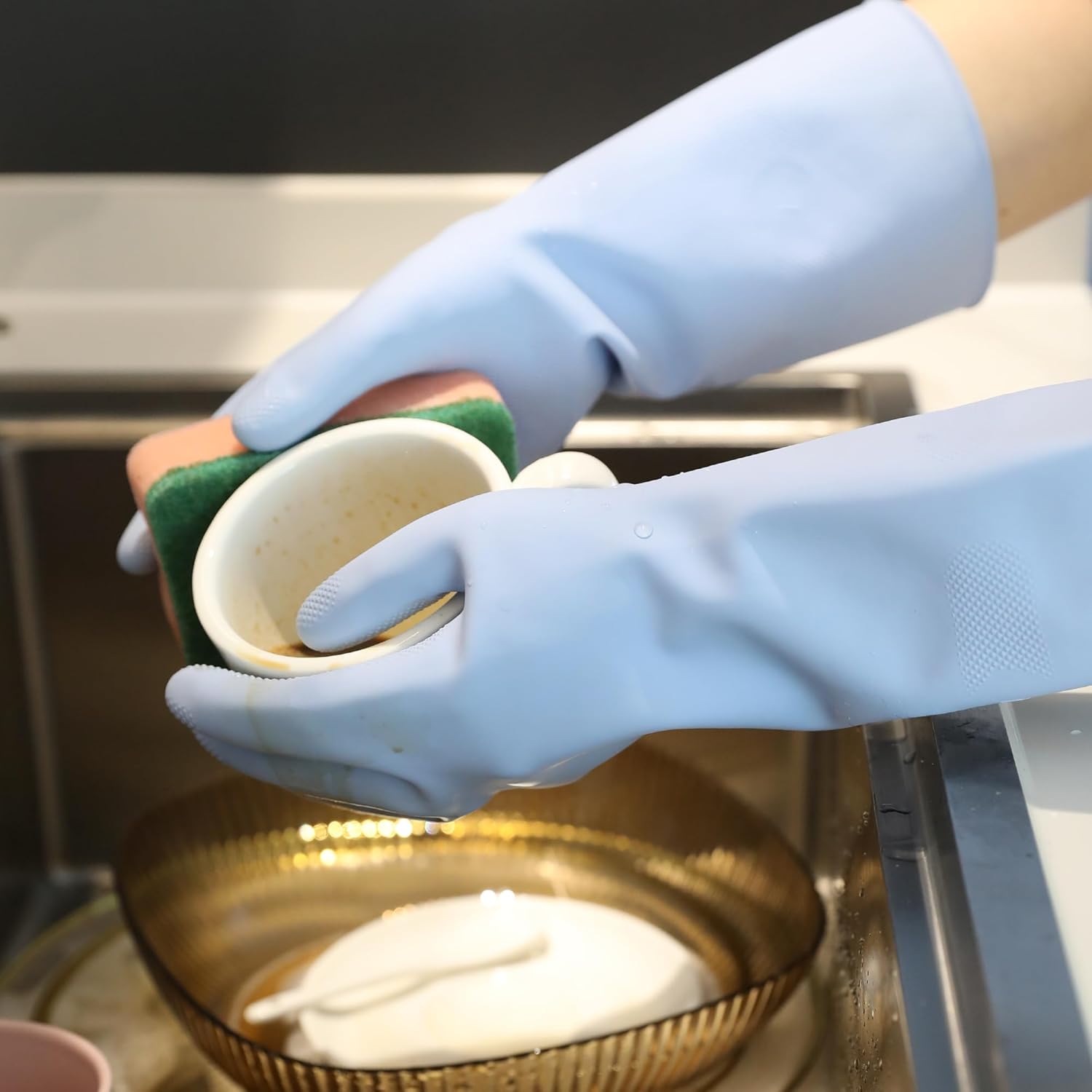 - Extended Cuffs for Extra Protection: The long, waterproof cuffs protect your forearms from water, cleaning agents, and grime, keeping your hands and arms clean and dry during tasks like dishwashing, laundry, and household cleaning.