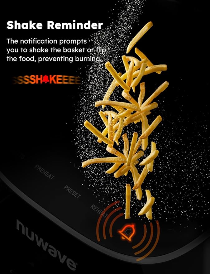 - SAFETY BUILT-IN – When the air fry basket is pulled out (opened), cooking is paused for safety. Once the basket is pushed back in (closed), the cooking resumes automatically. The air circulation riser is also redesigned to fit very securely eliminating the chance of mishaps.