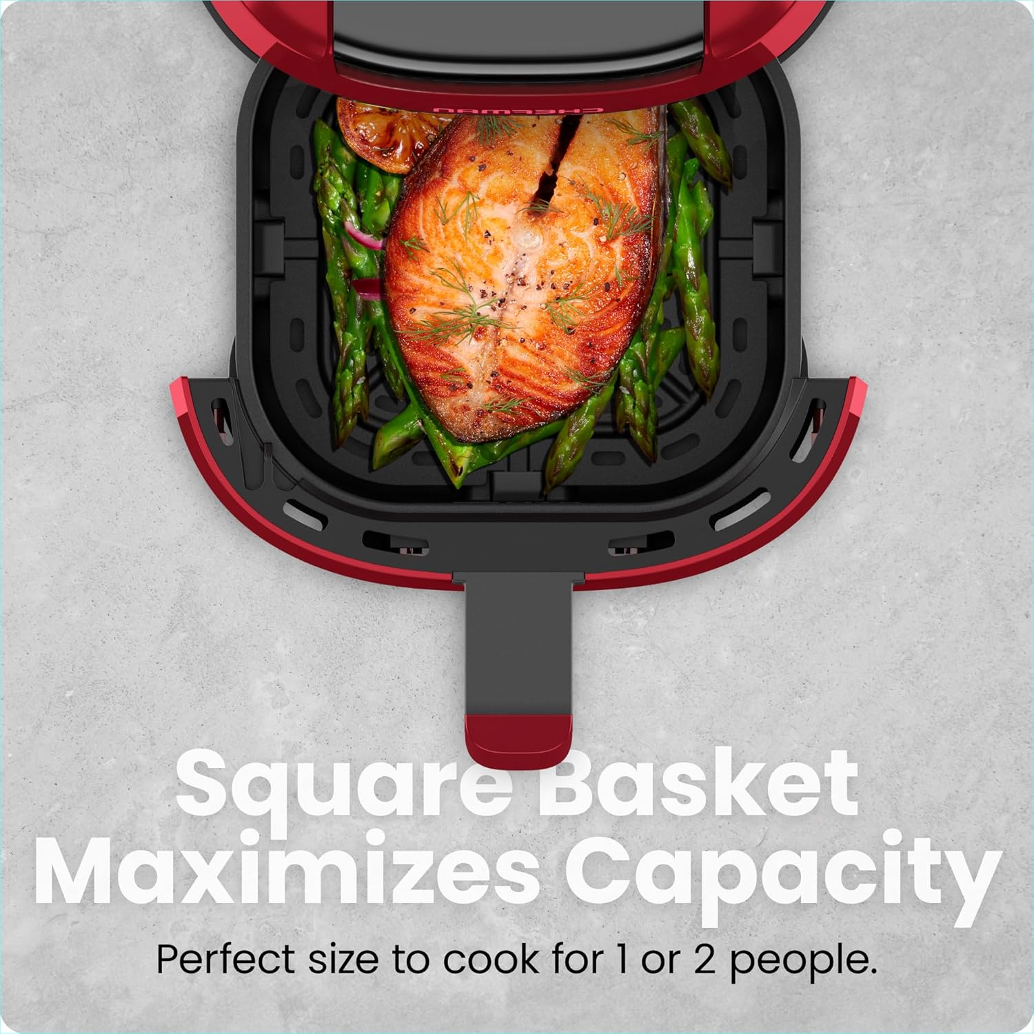 - SUPREME SPACE-SAVER: The square basket maximizes its 2-quart capacity. Housed in a sleek, narrow design to keep its countertop footprint small, this airfryer eliminates clutter and extraneous appliances.