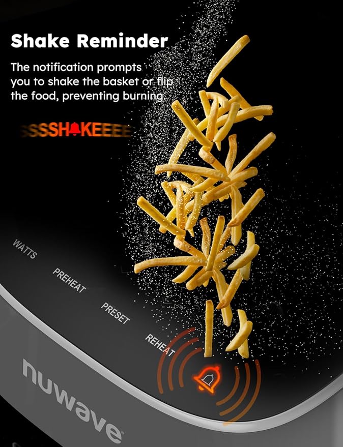 Nuwave Brio Plus 8 Qt Air Fryer, PFAS Free, New & Improved, Digital Touch Screen, Cool White Display, 50°F~400°F in Precise 5°, 5 Cook Functions, 100 Presets & 50 Memory, 3 Wattages 700, 1500, 1800