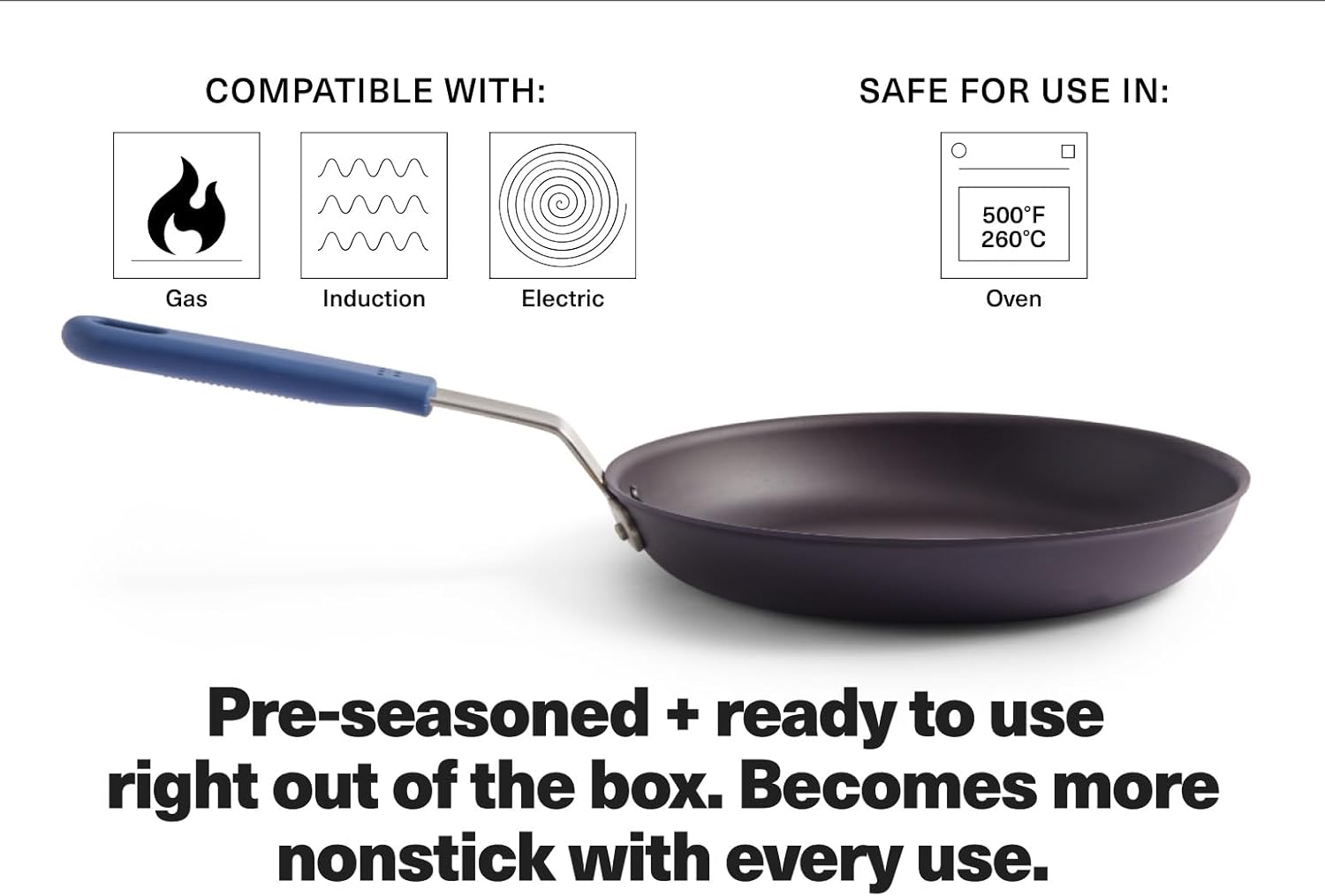 - Premium Pre-Seasoned Carbon Steel (Not Carbon Nonstick): Enjoy a naturally nonstick cooking experience with our high-quality carbon steel pan, pre-seasoned for immediate use and superior performance. Works with induction, gas, electric or glass cooktop.