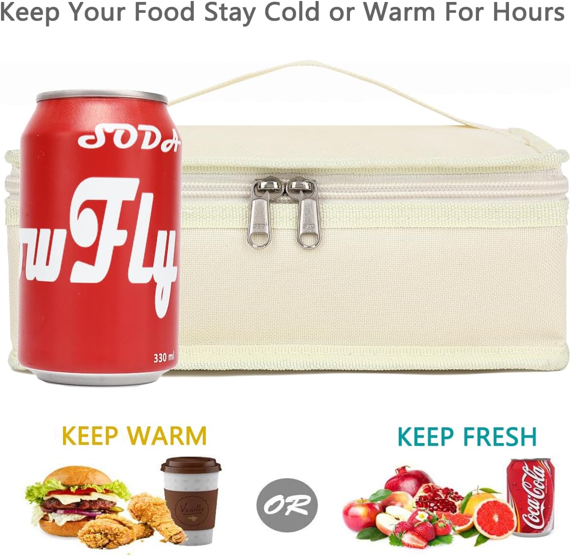 - ✿ Portable:Handle and could easy put into backpack or large handbag.Soft grip handles of Lunchbox is designed for convenient carrying, inner mesh pocket can separately stores ice pack and tableware. Easy to clean and dry, just wipe it with a wet cloth.