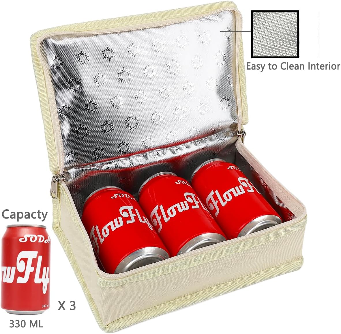 FlowFly Small Insulated Lunch box Portable Soft Bag Mini Cooler Thermal Meal Tote Kit with Handle for Work & School, Beige