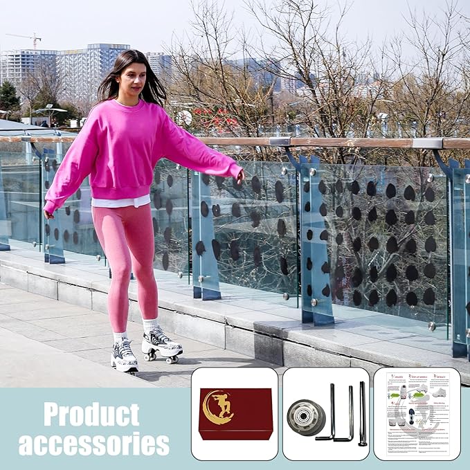 - Transformative Design: Say goodbye to carrying around bulky roller skate shoes! Experience the thrill of skating and the comfort of sneakers like never before with our innovative 2-in-1 Roller Skates and Sneakers! Designed for both style and functionality, these incredible shoes seamlessly transform from trendy everyday sneakers to sleek 4 wheel roller skate shoes with hidden wheels, giving you the freedom to switch between walking and rolling.