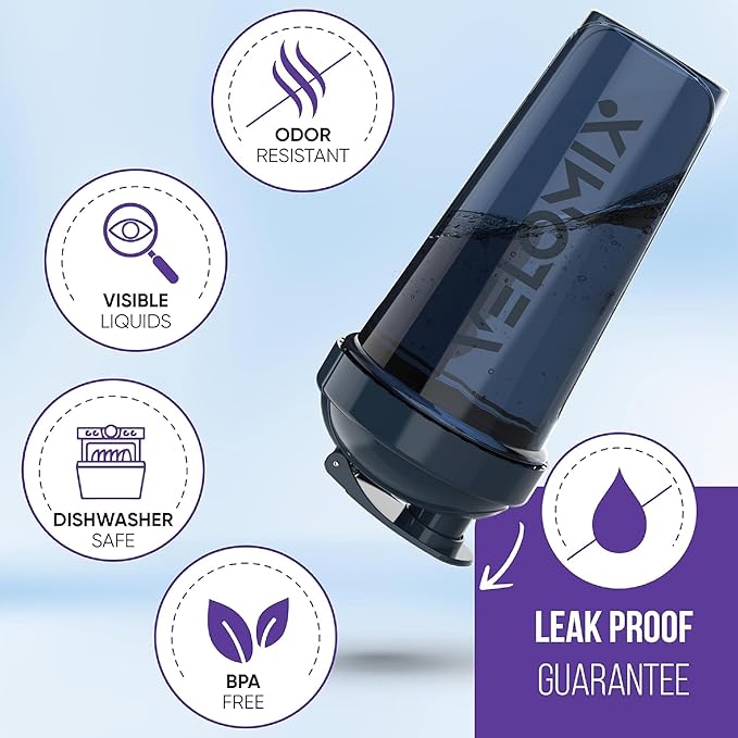 - CLEAN IN A JIFFY - Velomix bottle shaker protein design is for the on-the-move individual. A swift rinse and you're set for another round! More time savoring, less time scrubbing.
