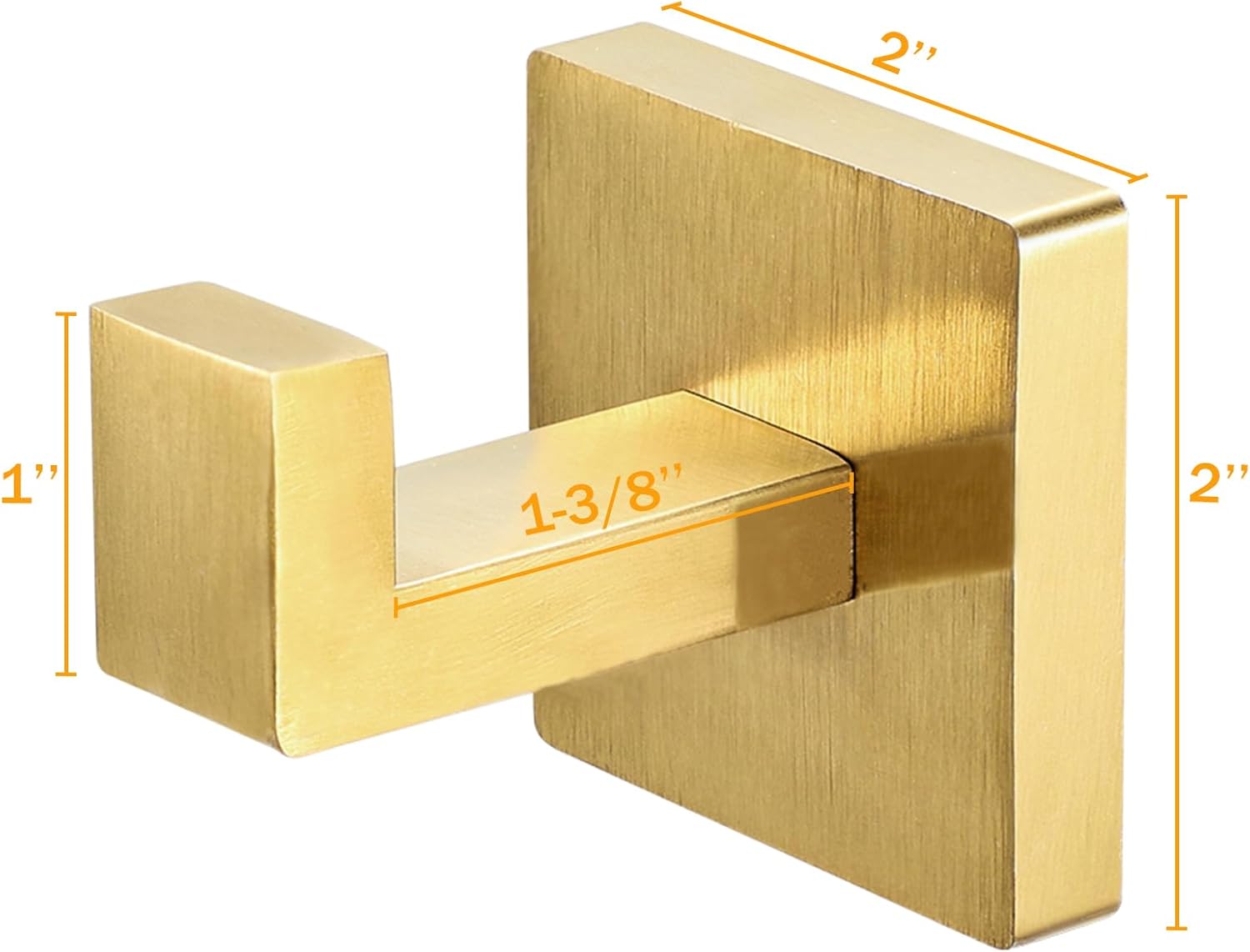 - Classy Appearance: This coat hooks set designed with a modern squared look, surface is brushed gold, which could be your bathroom & living room & bedroom & kitchen & pool & closet decor and holder