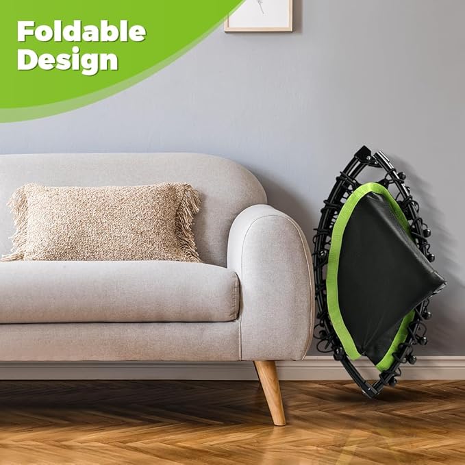 - Foldable and Portable: Designed for convenience, our mini trampoline folds for compact storage and transport. Perfect for small spaces, it can be effortlessly stored under a bed, in a closet, or in a car trunk, making it ideal for any home.