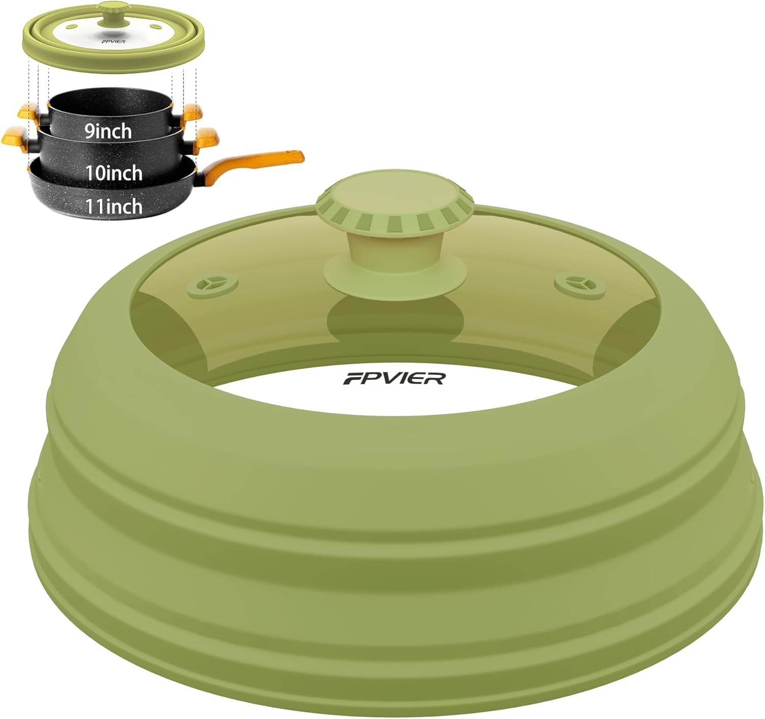 - 【Patent Collapsible Design】Experience the excellence with FPVIER's Patent Collapsible Silicone Dome, the diameter is 11.8 inch (29.97 cm), uniquely crafted to cover plates & bowls from 6"-11" with ease, providing a big surprise in the compact storage form.