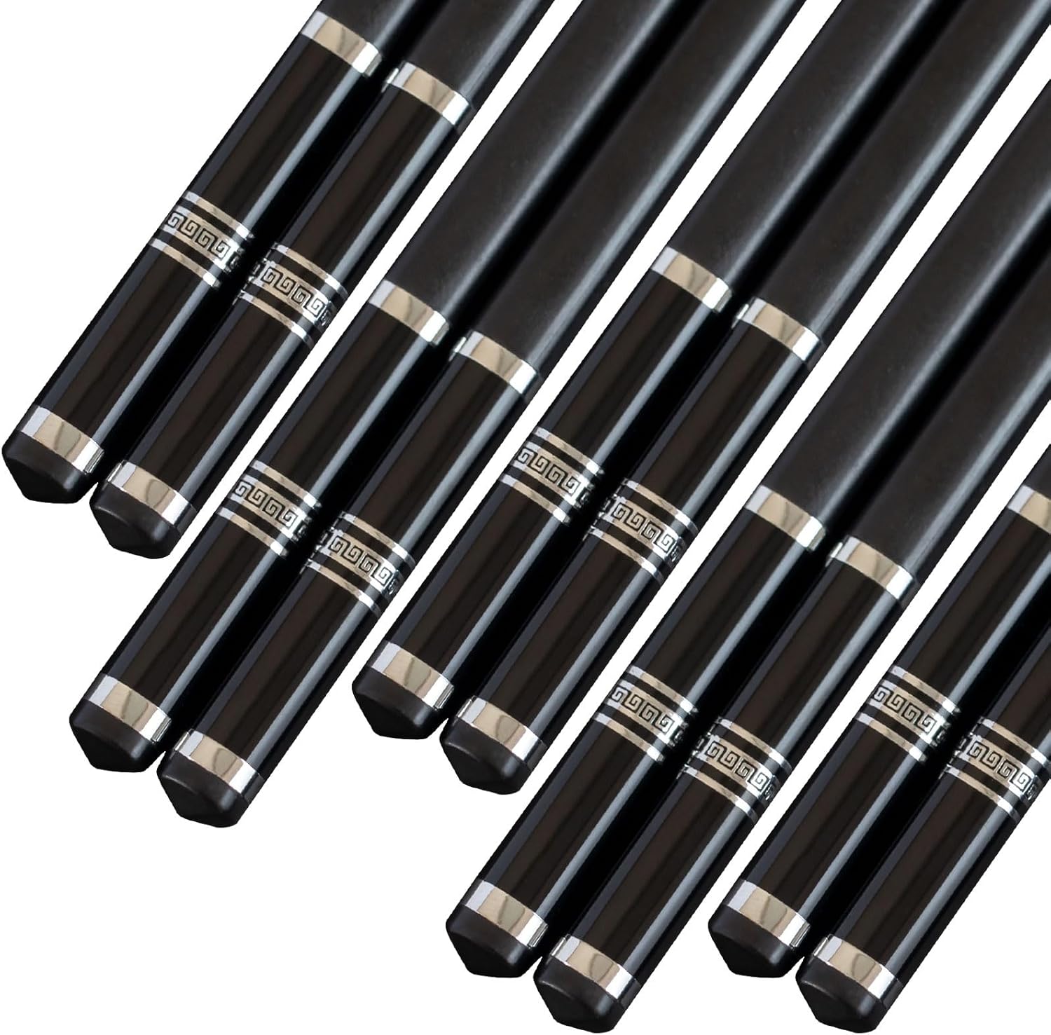 Chopsticks Reusable 5 Pairs Fiberglass Chopsticks Dishwasher Safe Square Lightweight Non-Slip Chop Sticks Set (silvery)