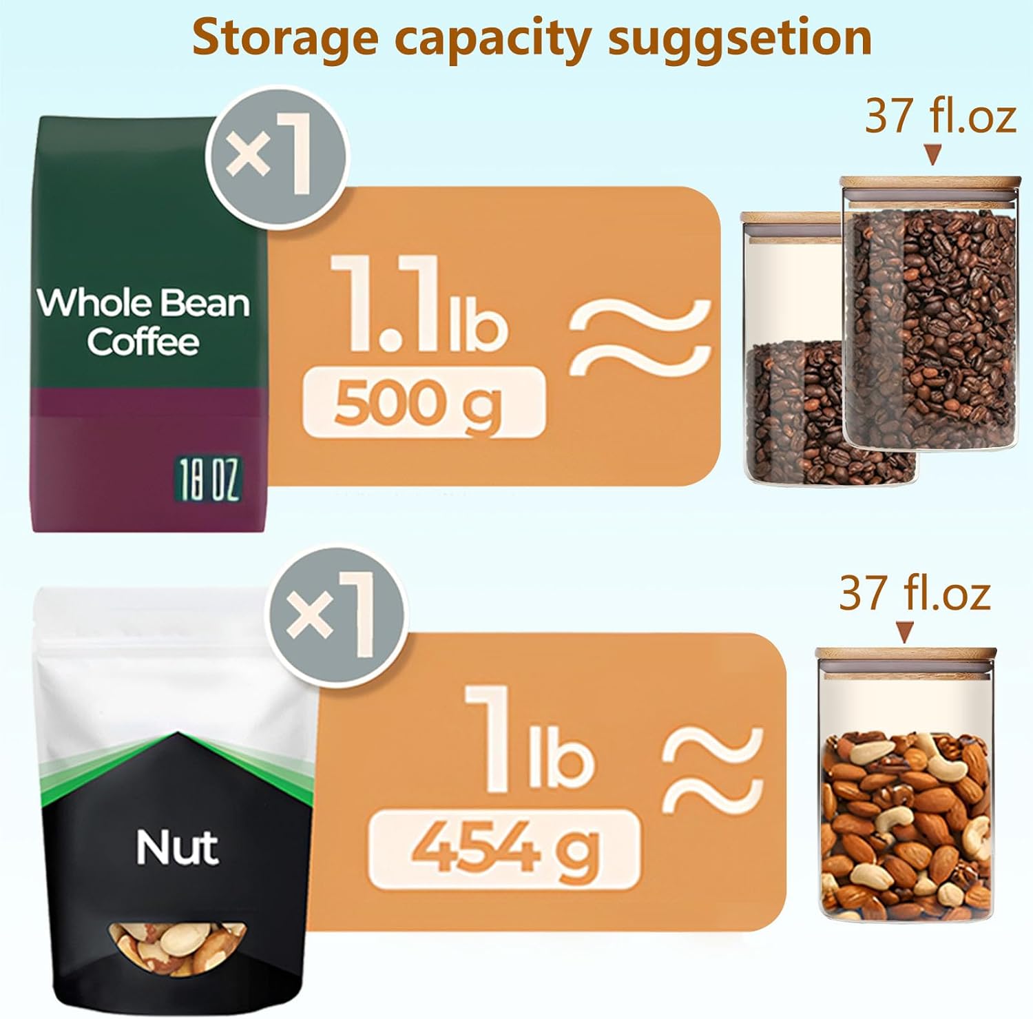 - [Safe to Use] The airtight canisters set is made of food-grade high borosilicate glass, lead-free, non-toxic. The lid is made from natural bamboo, adding an aesthetic touch to practicality. The glass is dishwasher-safe, but we recommend handwashing the lid for optimal care.