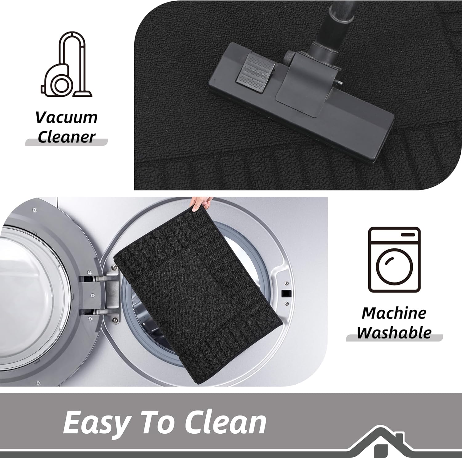 - Our non skid washable kitchen rugs are easily cleaned.You just clean the kitchen mat set by the vacuum.They are machine washable.Don't worry about fiber falling because of edge locking technology.Our mat for kitchen floor can be reusable for long time. kitchen mats still maintain shape and colors.