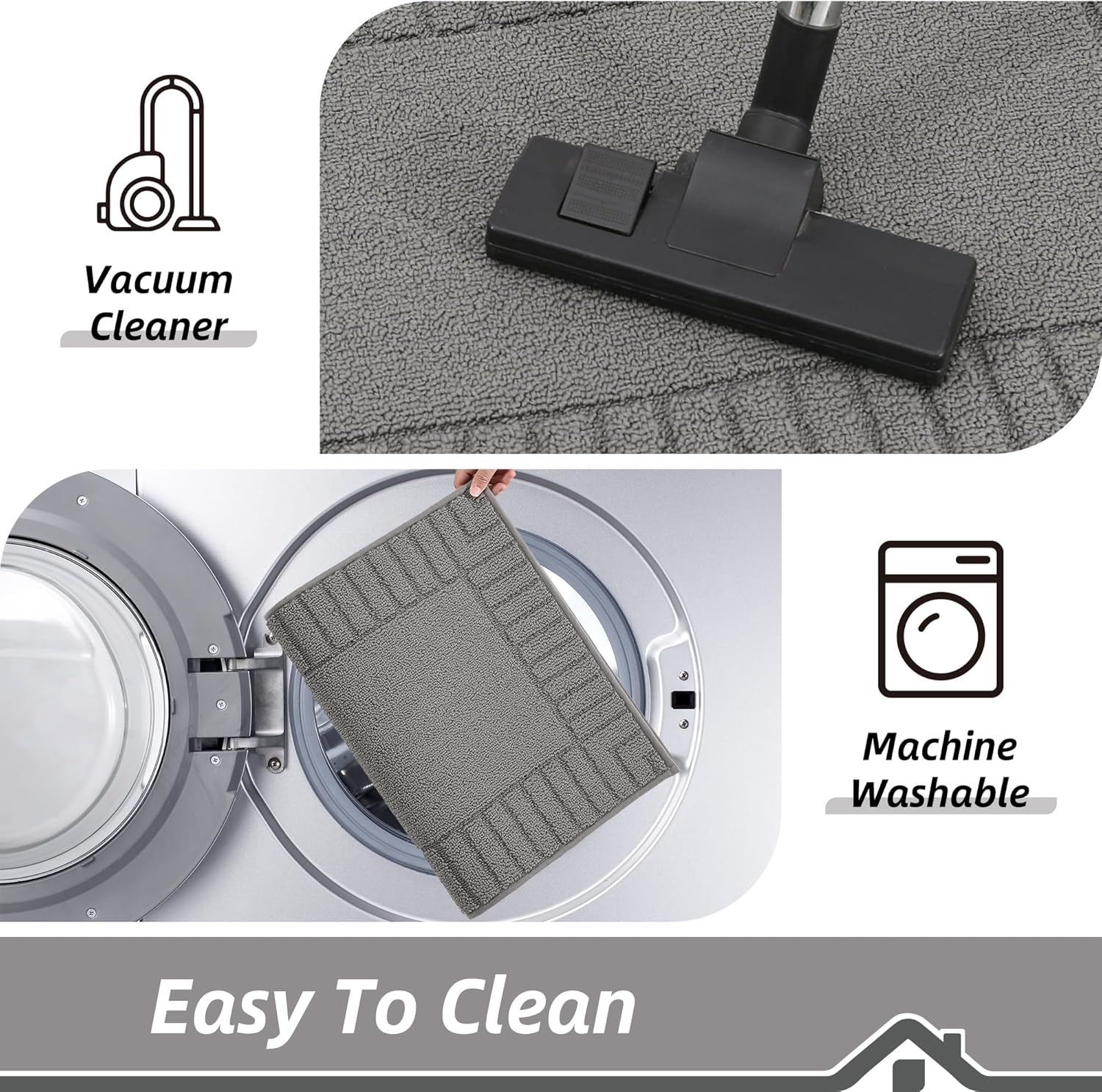 - Our non skid washable kitchen mats floor are easily cleaned.You just use the vacuum to clean accent rug on daily.For a deeper clean,simply threw it into the washing machine.Don't worry about fiber falling because of edge locking technology.Our washable kitchen mats floor can be tough and reusable for long time. Kitchen rush still maintains shape and colors