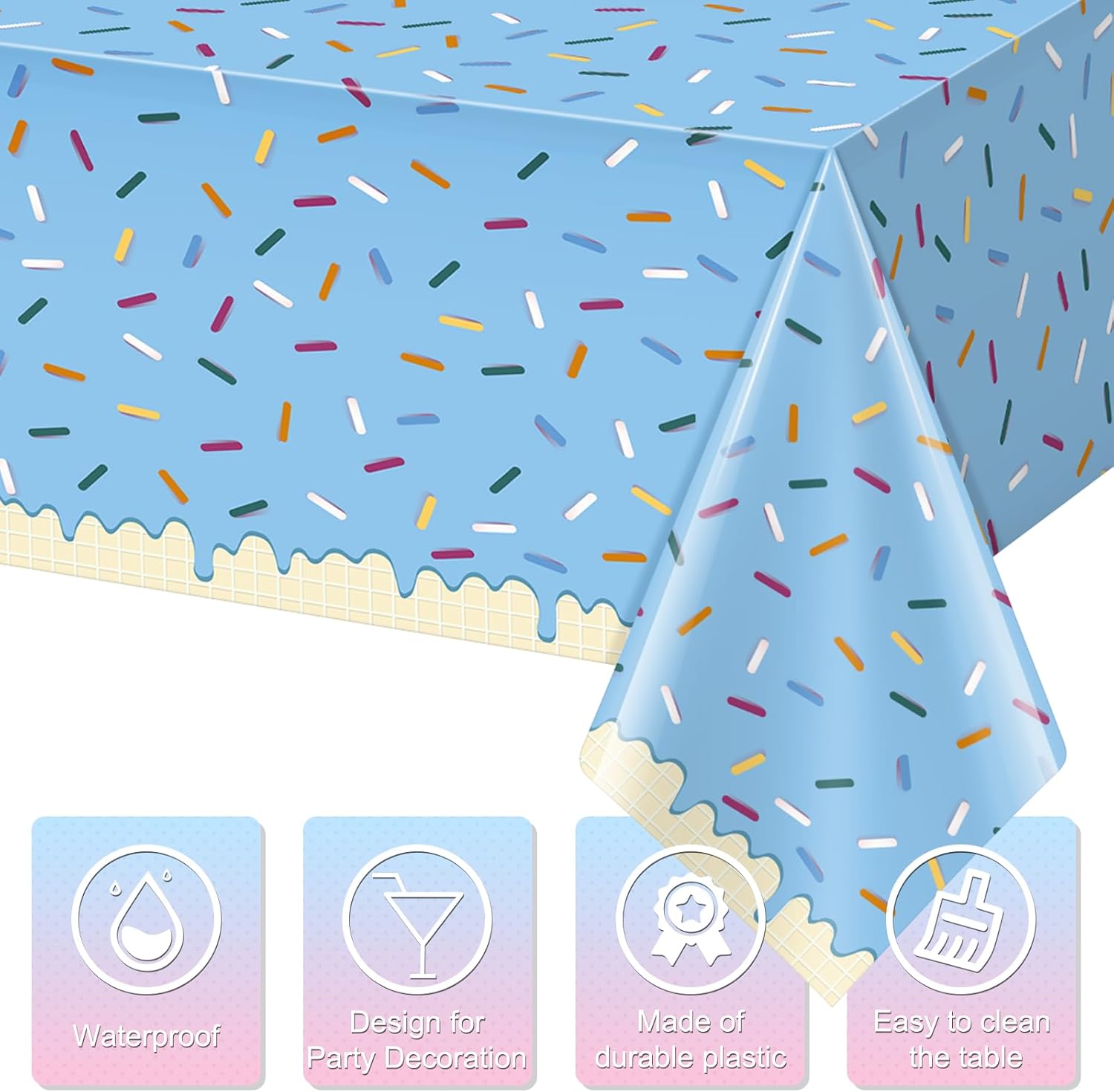 3pcs Sprinkle Ice Cream Party Decorations Tablecloths,Disposable Plastic Rectangle Table Covers for Baby Shower Sweet One Girl Birthday Donut Themed Party Supplies, 3 Color,54 X 108 Inch