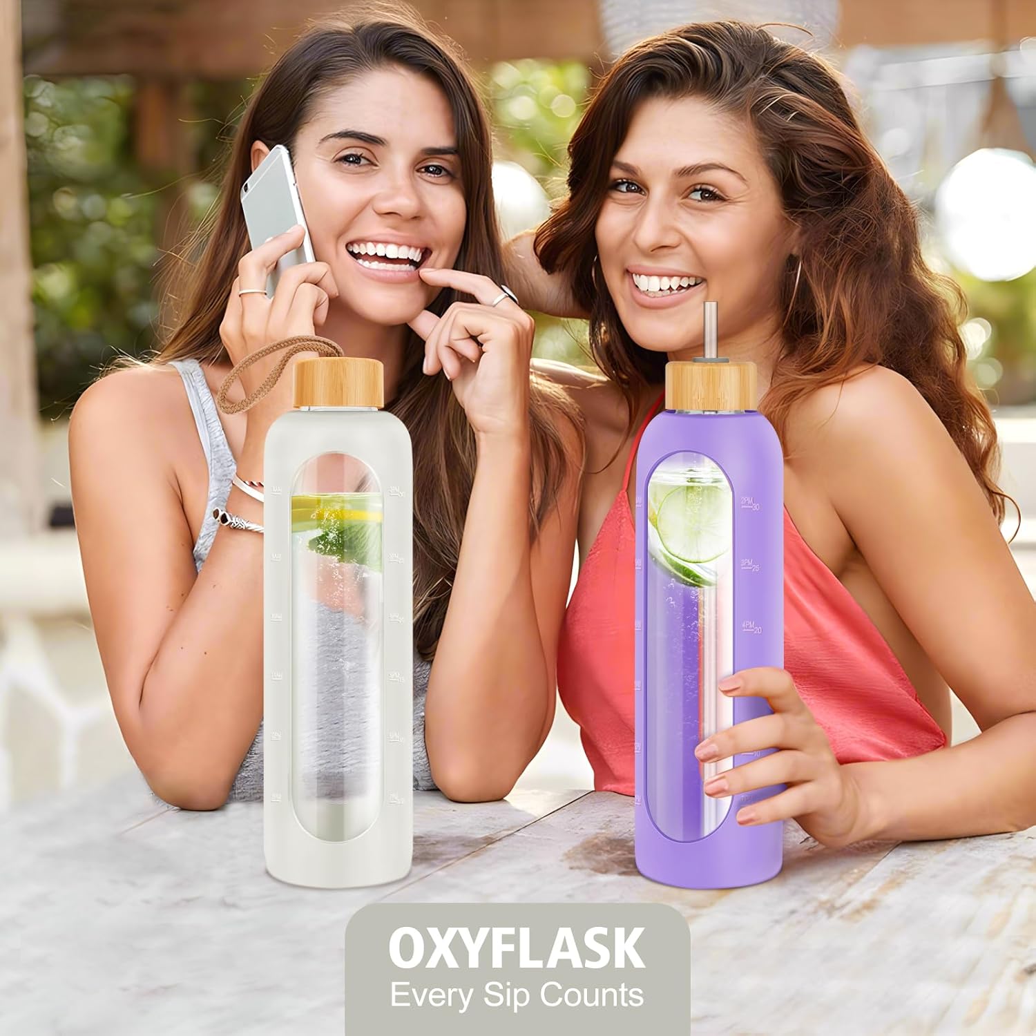 - TRACK DAILY HYDRATION GOALS: Stay on top of your water intake with this glass water bottle with time marker, featuring clear volume indicators. Whether you're at work or exercising, itβs a simple, effective tool to meet your health and hydration goals.