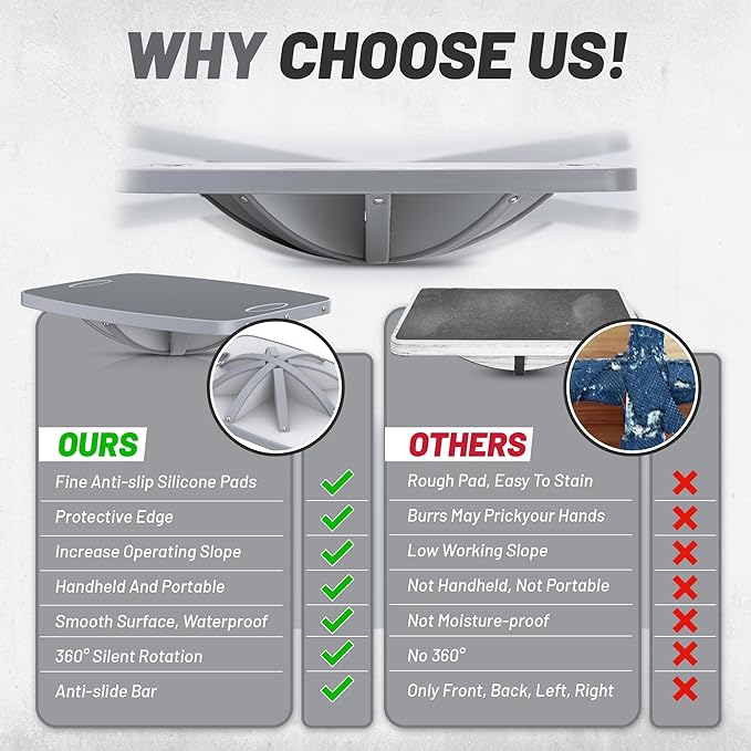 - 【Protective treatment】The surface of the anti-slip balance board is made of high-grade gray grid silicone pad, which has good elasticity and comfortable touch. Anti-slip, fits the hand, safe and comfortable. It is very suitable for advanced balance training such as push-ups, squats, plank support, etc., suitable for men, women, young people, the elderly, and children.