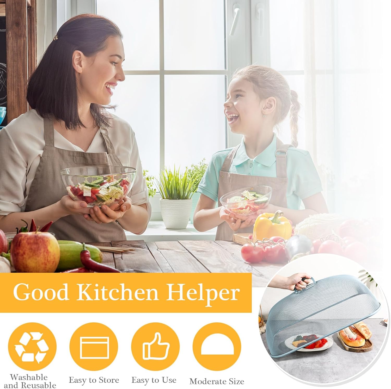 - Easy to Clean and Store: our food fly net conveniently features a plastic hook at the top, making storage a breeze; When not in use, hang the cover or stash it in a cabinet; The reusable and washable outer panel cover is easy to clean; Simply use soap and water for the cover and scrub the hard metal net with a brush or sponge to maintain its polished look