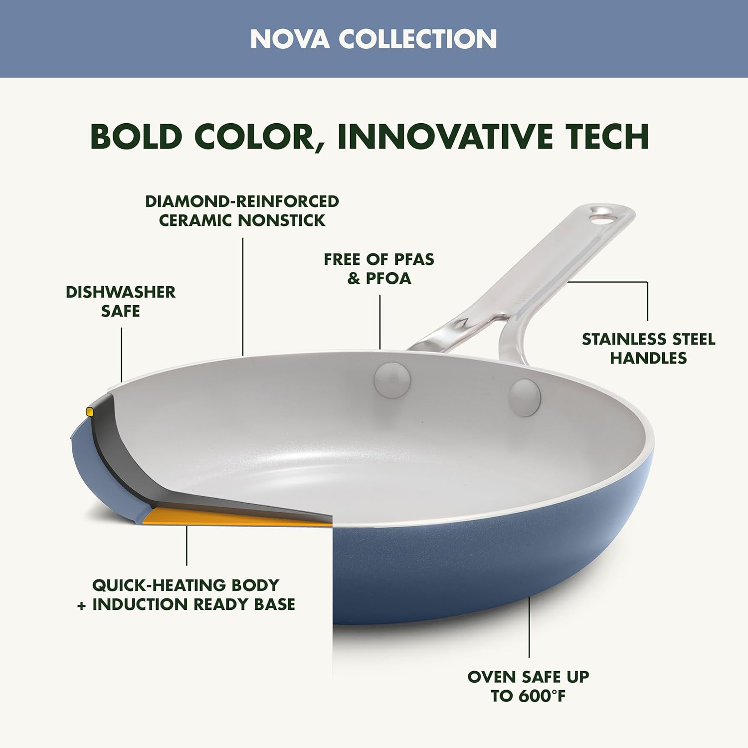 GreenPan Nova 10” Frying Pan Skillet and 4.37QT Sauté Pan with Lid, Oprah’s Favorite Things 2024, PFAS-Free Ceramic Nonstick, Induction Suitable, Sear, Fry, Broil, Dishwasher & Oven Safe, Ocean Blue