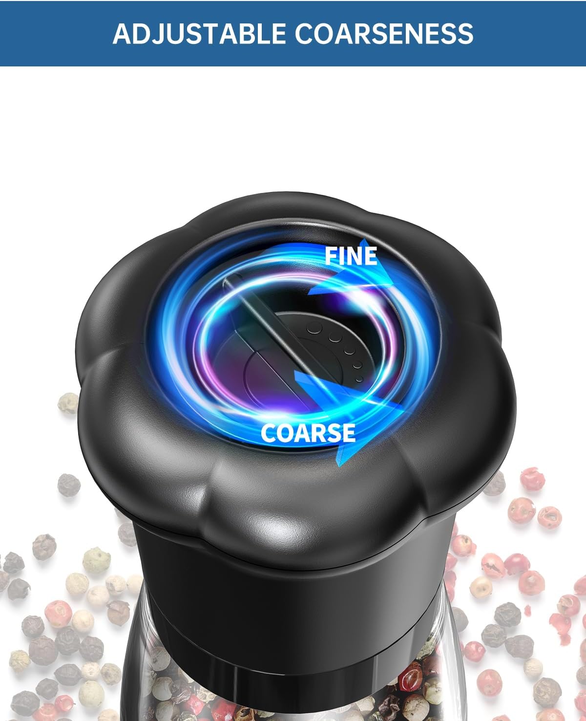 - EASY TO USE AND CLEAN - With its simple yet efficient design, the salt and pepper grinder set is easy to use and even easier to clean. Simply twist the upper body to get the seasonings you need. The glass container is washable directly by water for added convenience