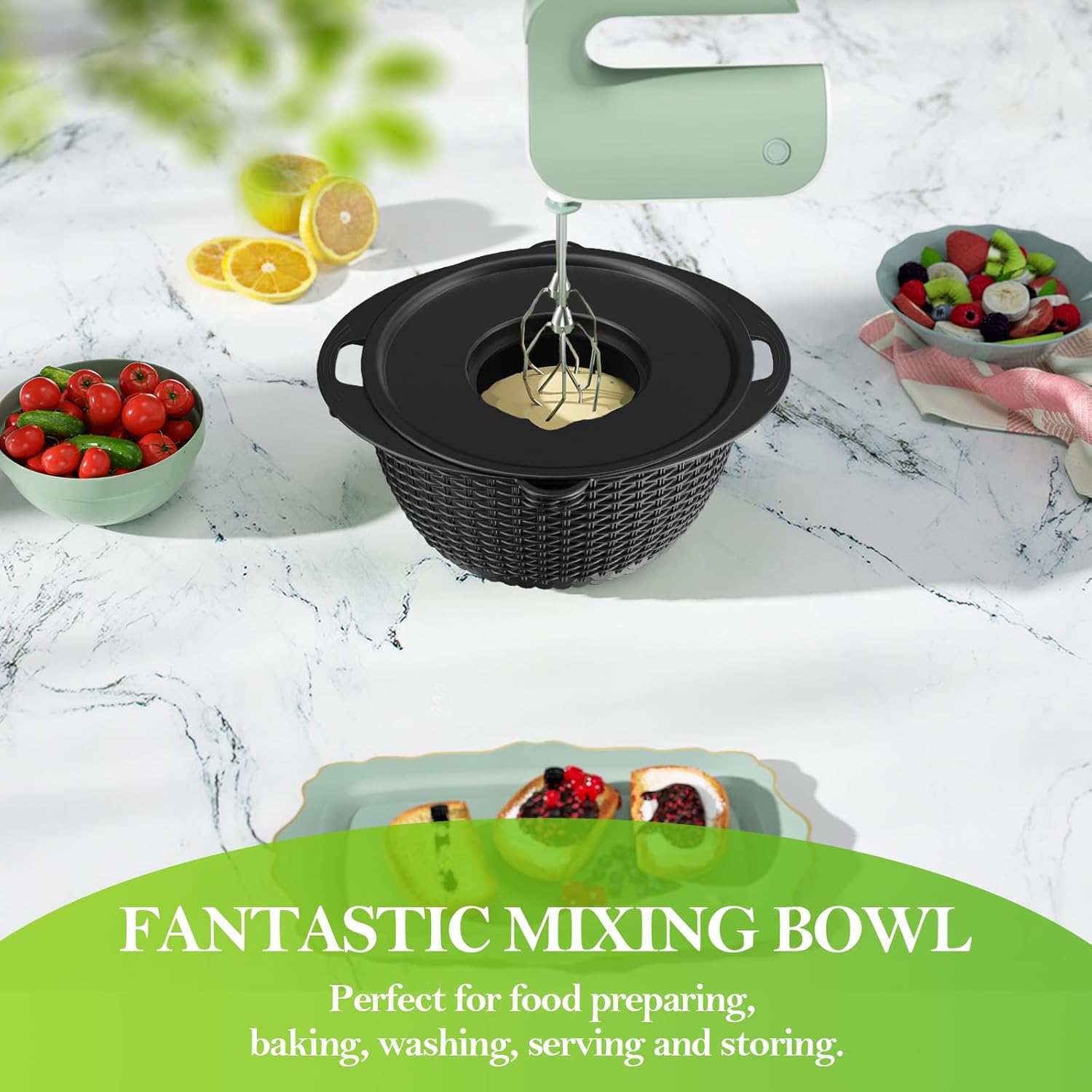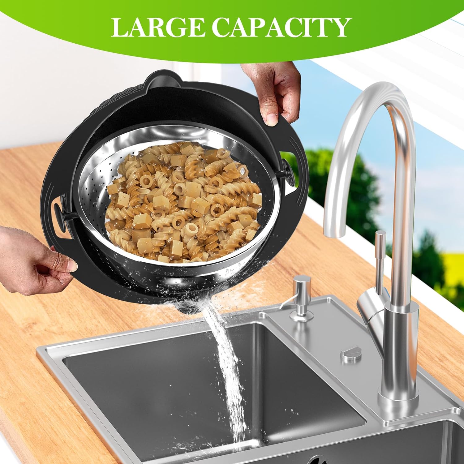 - Ergonomics in Details - The handle of the strainer bowl is large, sturdy, and easy to grip. The non-slip base and unique shape keep the bowl steady when beating on the counter or carrying it on the go. The density and right size of holes make draining fast and food won't fall. The open mouth on the pasta strainer makes water pouring fast.