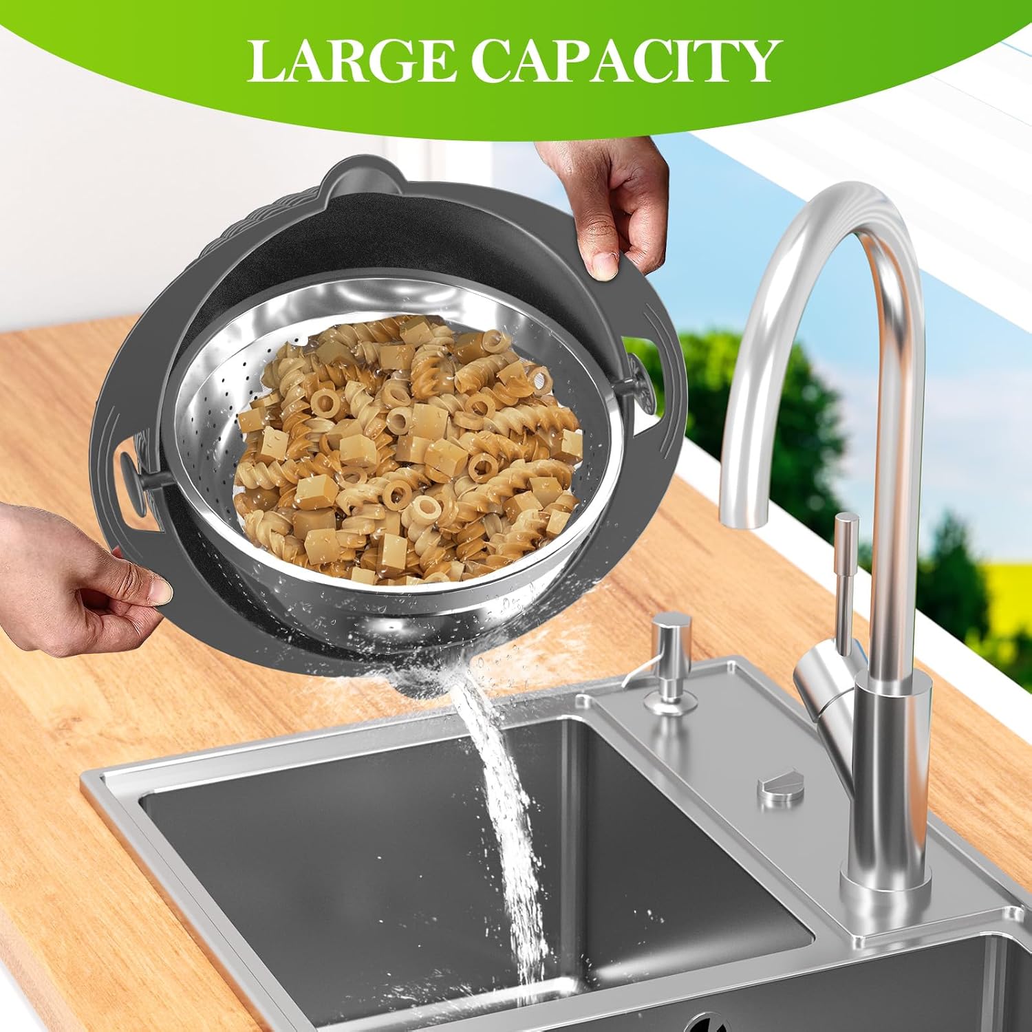 4-1 Colander with Bowl Set - Colander for Kitchen - Strainers and Colanders - Pasta Strainer - Funny Presents for Women - Fruit Cleaner Veggie Wash Kitchen Essentials, Grey