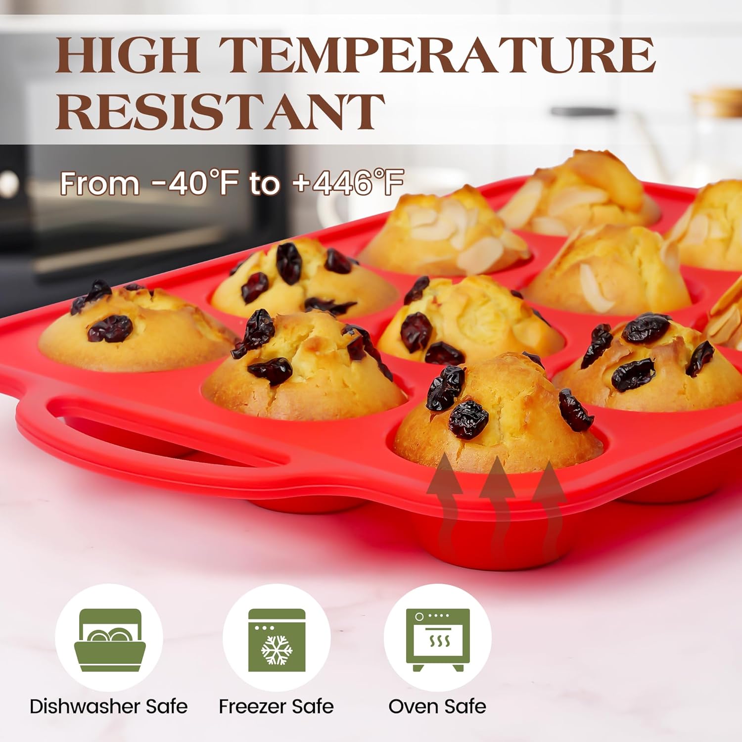 Silicone Muffin Pan for Baking 12 Cup Nonstick Cupcake Pan Small Silicone Cupcake Mold with Metal Reinforced Frame BPA Free (1 Pc, Red)